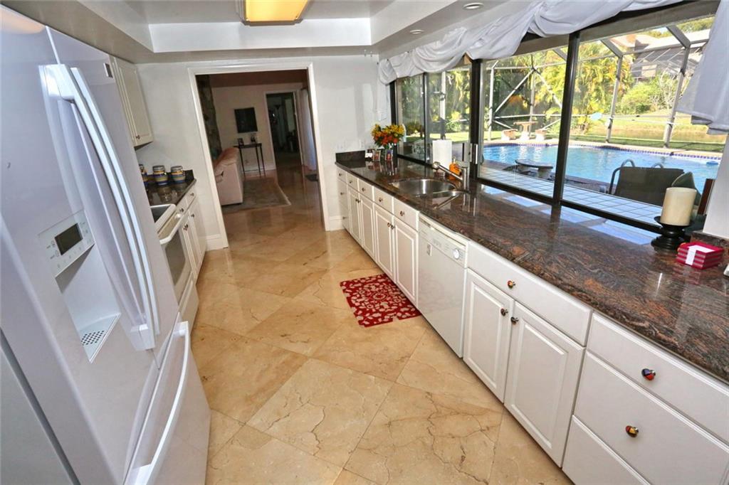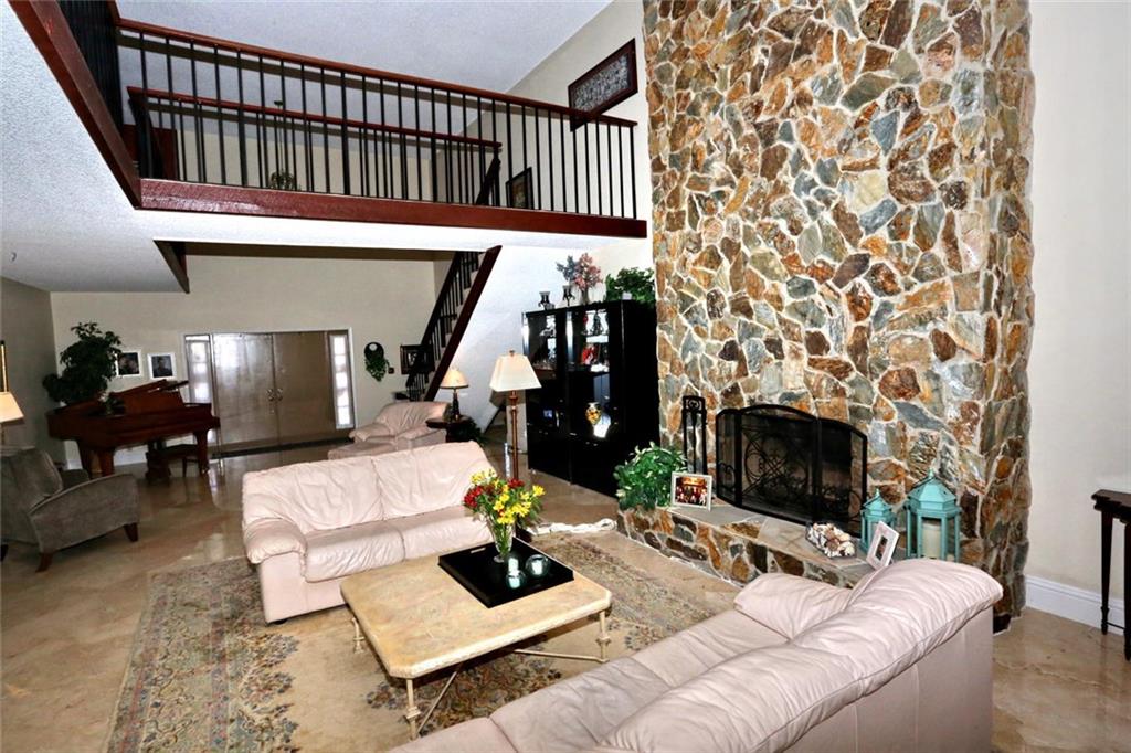 Spacious waterfront home in ideal location. Marble diagonally installed on 1st floor, 2 master suites on 1st & 2nd floors, perfect for Nanny or in-law suite. Floor to ceiling stone fireplace, billiard room w/wet bar & pool table. Granite kitchen w/breakfast nook, waterfall, 60' balcony, pool & canal views. Laundry room and 2 full bathrooms on 1st floor. Take stairs to library & loft area. Spectacular balcony length of home with spiral staircase. A true one of a kind. Four AC units & two water heaters.