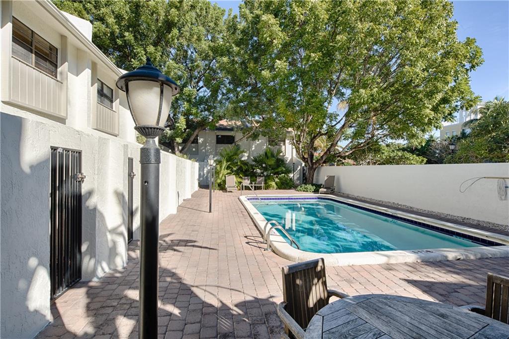 Updated townhome in popular Victoria Park! Features include a newer kitchen with wood cabinets and granite countertops, Spanish tiles and wood laminate flooring throughout. Two private patios and impact glass windows. Both bedrooms are large with a good amount of closet space. Gated complex with community pool, assigned parking spot (#2), and plenty of guest and street parking. Next door to Victoria Park Shoppes, and close to downtown and the beach. Call today for more information!