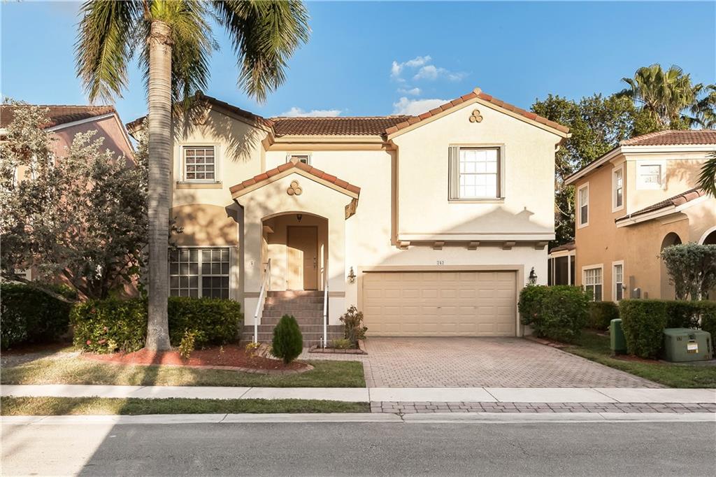 GORGEOUS 2 STORY HOME IN GATED COMMUNITY. FEATURES KITCHEN WITH GRANITE COUNTERTOPS, CUSTOM WOOD CABINETS & STAINLESS STEEL APPLIANCES WITH BEAUTIFUL CERAMIC TILES. 2 BEDROOMS ON GROUND FLOOR. MASTER UPSTAIRS. MASTER BATH HAS DOUBLE SINKS WITH SHOWER & JACUZZI TUB. A/C & WATER HEATER - 2013. ROOF - 2001. HURRICANE ACCORDION SHUTTERS ON ALL WINDOWS. HOA INCLUDES COMMUNITY POOL, GYM, CABLE, TENNIS AT EAGLE TRACE, ALARM, CLUBHOUSE. 10-15 MINUTES TO SAWGRASS MILLS MALL. 20-25 MINUTES TO FTLD AIRPORT & BEACH.