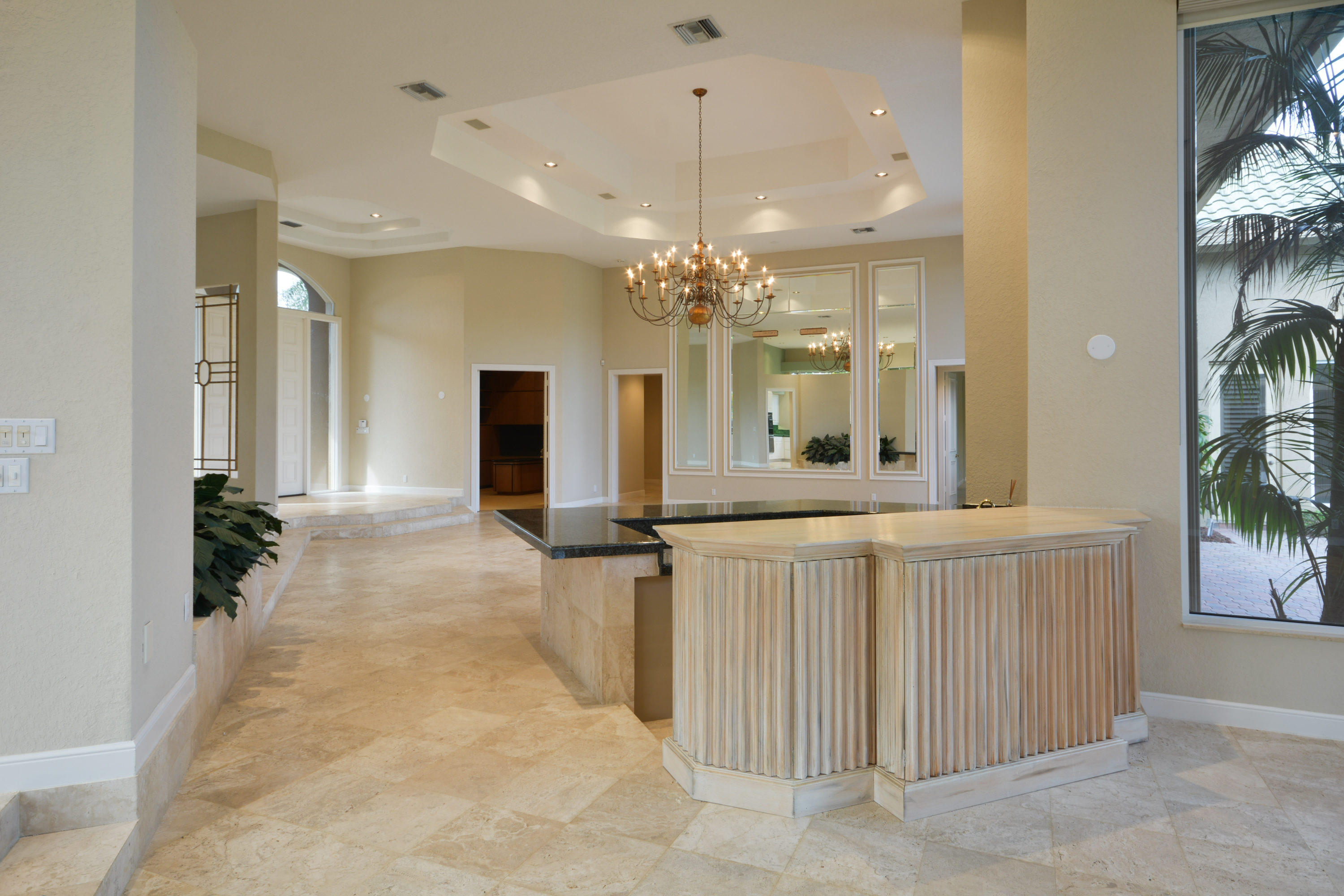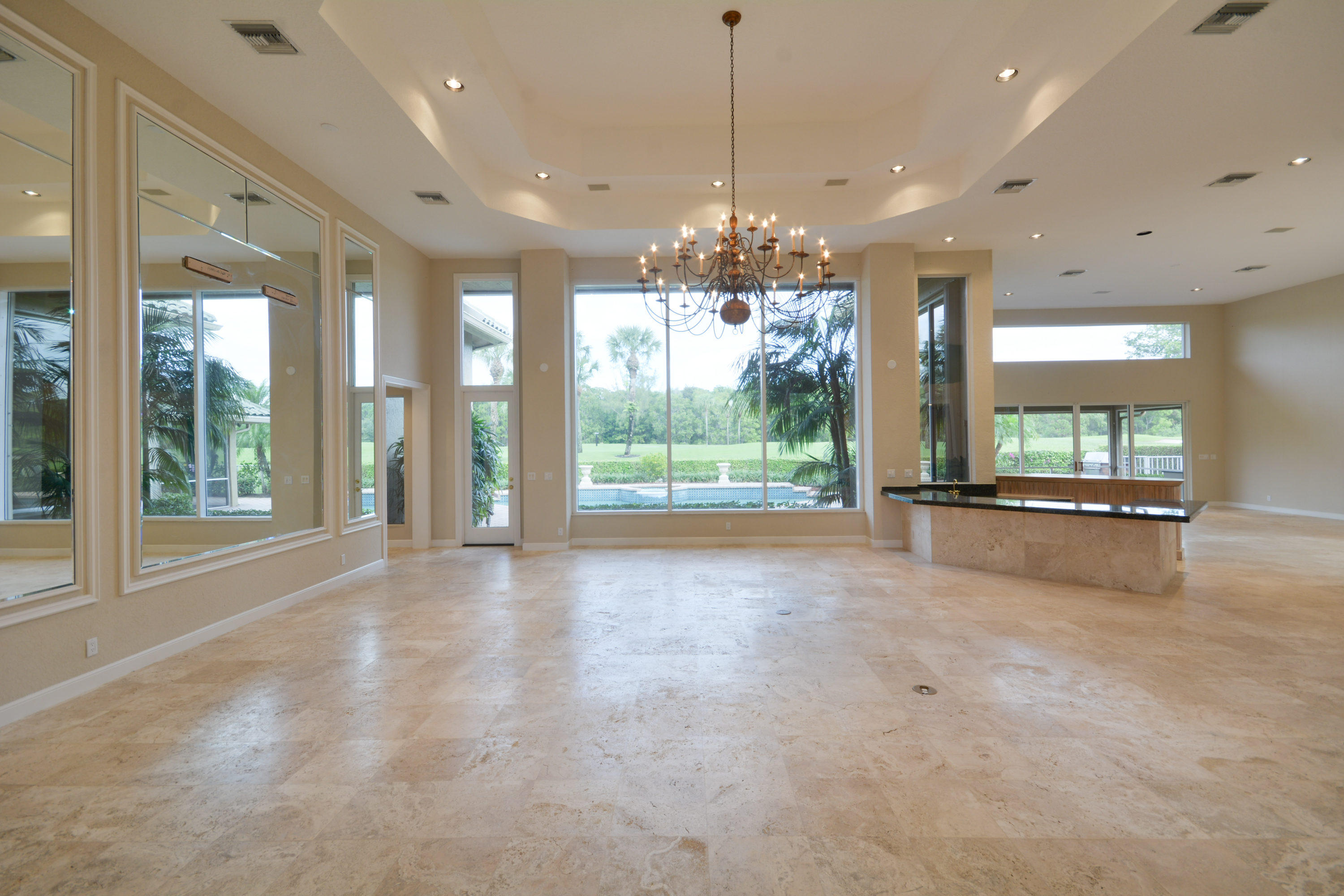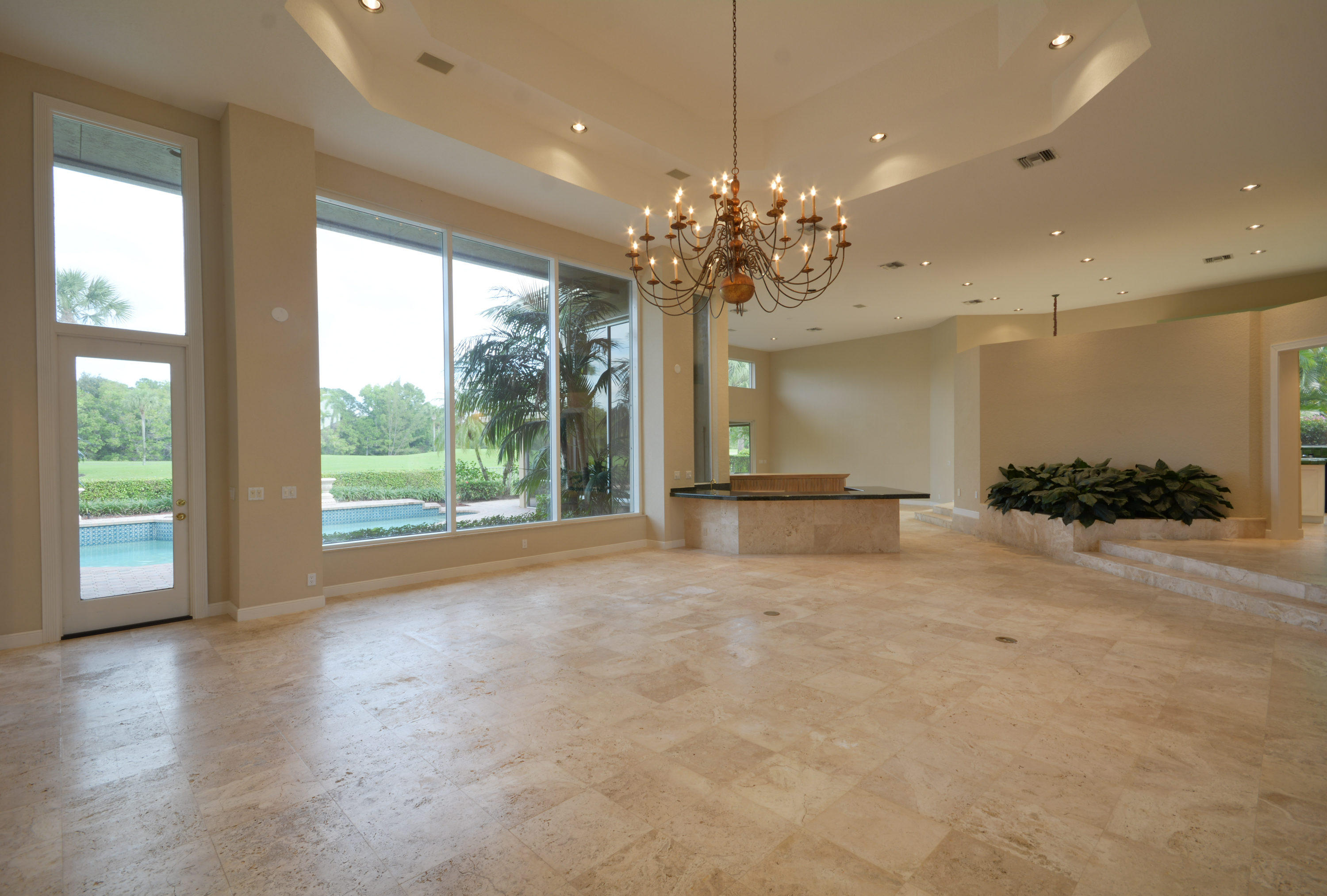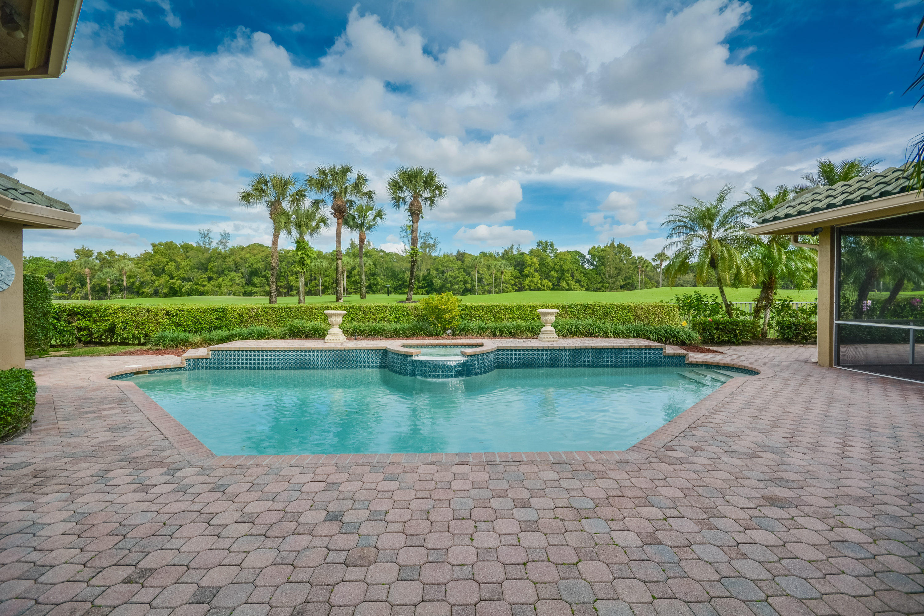 Beautiful custom estate home located on a fantastic lot location on the St Andrews Signature Palmer Golf course. This special golf vista overlooks the golf course, the C15 Canal and the lush tropical landscaping of Morikami Museum and Japanese Gardens. Dramatic entry foyer opens to a large great room with neutral marble floors and consists of a spacious living room complete with wet bar separating it from the family room. This open area also includes a breakfast room, kitchen and formal dining area. Very large 1st floor master suite features large windows overlooking the pool patio and golf views and includes his and hers bathrooms and very spacious closets. Also located on the first floor is a magnificent library with custom rich wood cabinetry and built in desk, as well as two en suite