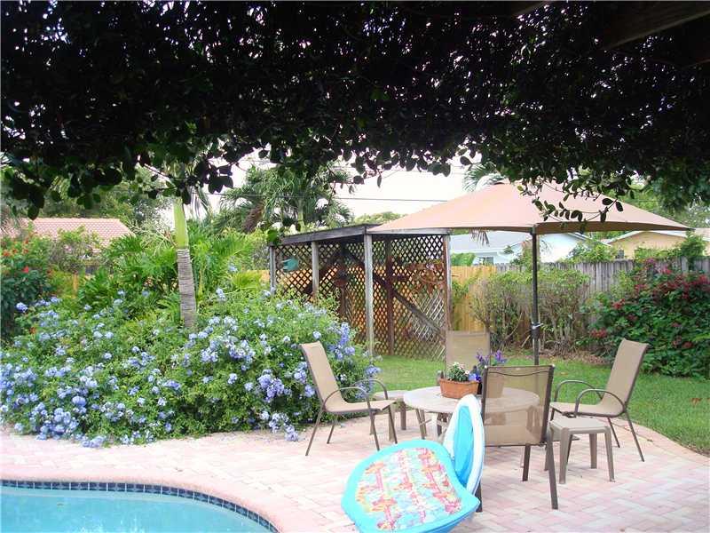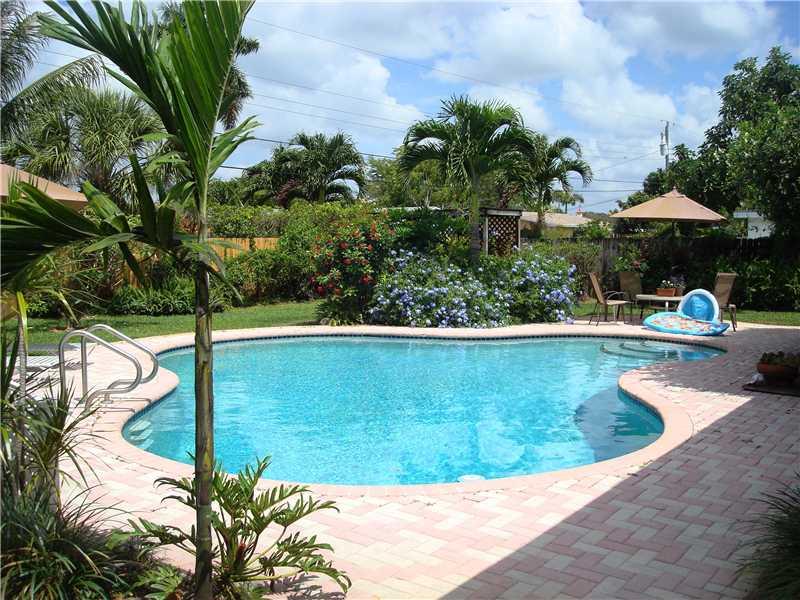 CHARMING 3/2 POOL HOME WITH 2 CAR GARAGE. THE SLIDING GLASS DOORS LEAD TO YOUR VERY OWN PRIVATE TROPICAL OASIS. SERVE UP A REFRESHING DRINK AT YOUR OWN NAUTICAL BAR, AND LAY POOLSIDE ENJOYING BEVERAGE AND THE GORGEOUS AND LUSH LANDSCAPING THAT SURROUNDS Y OU INCLUDING A BEAUTIFUL RED CHENILLE AND YELLOW TRUMPET TREE. BAMBOO WOOD FLOORING. CORAL ROCK WOOD BURNING FPC. REMOD KIT, SS APPLIANCES, A/C 5 YRS W/NEW DUCT WORK. IMPACT WINDOWS. AUTOMATIC SPRINKLING SYS, NEWLY PAINTED INSIDE & OUT.
