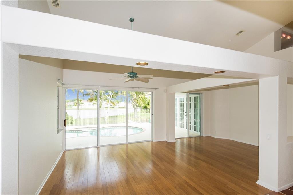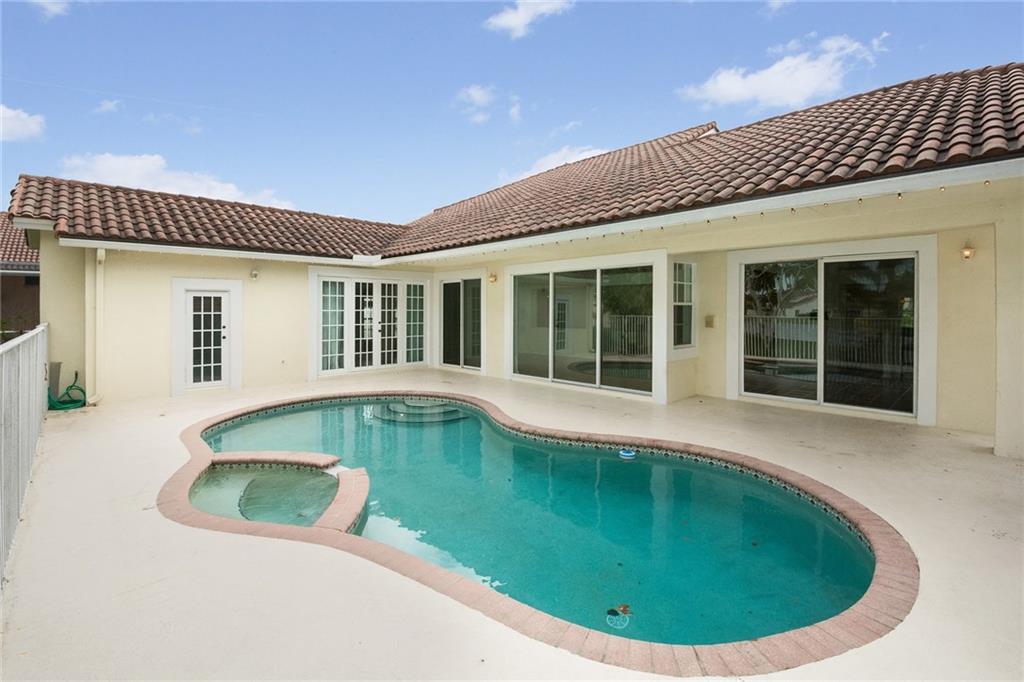 Spacious & airy Estancia Model located in sought after Laguna Springs. Ideally situated on lakefront lot with great lake views. Fenced pool with large open and covered patio. Currently boasts 3 BR (Master BR on 1st floor) plus loft (could be 4th BR) plus media room (could be 5th BR)! 3 Full bathrooms + 2 car garage. Bamboo flooring in Living, Media, and Master rooms, tile in social areas & carpeting upstairs. Family Room, very high ceilings, fresh neutral paint, central vacuum, hurricane shutters & more!