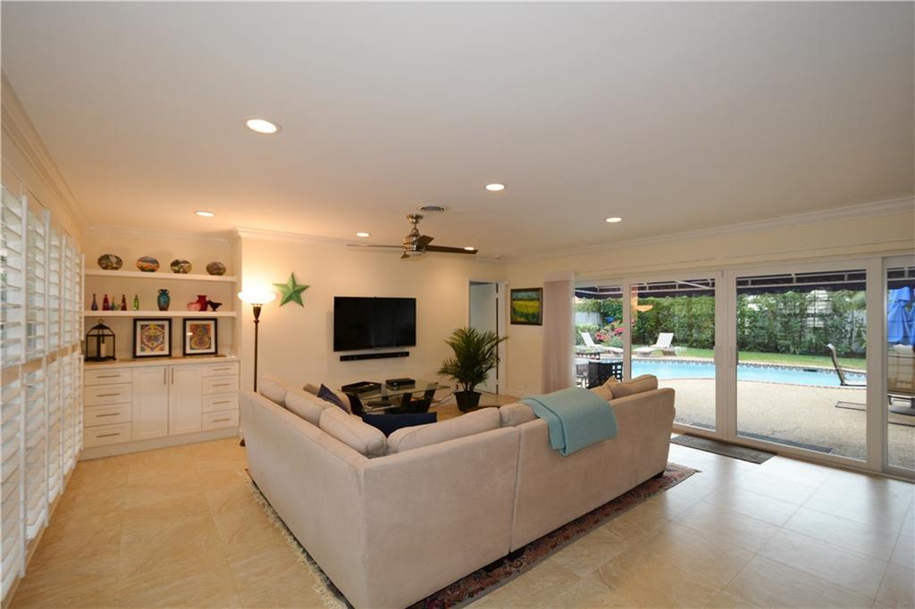 This home is located in the heart of Coral Ridge. It has been substantially updated throughout with new baths, new kitchen, new porcelain tile floors, new recessed lighting, new impact windows, new impact doors, plantation shutters and 1 year old roof. Large open floor plan, laundry room,large pool area with new awnings, completed fenced, 2 car garage with storage area and large side yard.