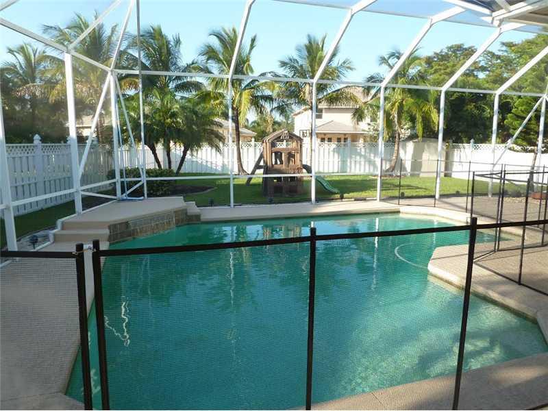 Beautiful triple split 4 bedroom, 3 bathroom, 3 car garage, large fenced backyard w heated pool house in elegant Grand Reserve community of Coral Creek. Fitures: gourmet kitchen w granite counters, island, built-in double oven, wine cooler, new energy eff icient A/C, extended patio, accordion hurricane shutters. Walk to resort style clubhouse w fitness center, billiards room, children's playground ...etc. All "A" rated schools.