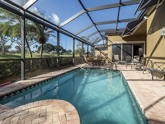 Incredible premium water and golf overlooking a signature hole. Premium, oversized, south-facing Cascaya lot with long picture-perfect views! Enjoy this open 3BR/3BA+Den with a new roof. Whole house water filtration system, high quality screen for the lanai, newly installed awnings. Lovely designer touches, fully screened pool and spa, open kitchen to family room, high ceilings. Walk to the club, close proximity to Ibis's front gate gives this home a convenient location.