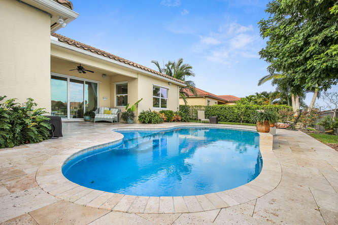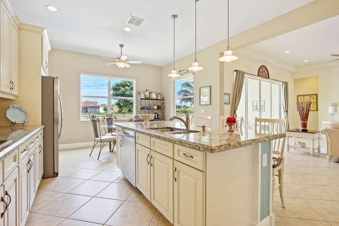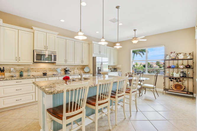 Must see! Rarely offered this Monaco floor plan has it all on one floor! 4 bedrooms (currently being shown as 3 and office) and 3 full bathrooms, gourmet kitchen with an extra wall of built in storage, upgraded appliances, pool with water feature, 3 car garage all on a gorgeous lake view! Complete with its own Bocce ball court! Home shows like a model with custom bead board and upgrades throughout. Feel like you're on vacation everyday! Don't miss this coastal inspired retreat convenient to shopping, restaurants, I-95, Turnpike and airport.Portosol is a gated community offering a wide variety of amenities including clubhouse, resort style heated pool, state of the art fitness center, billiards table, children's play area with interactive water features, lakes and plenty of green space.