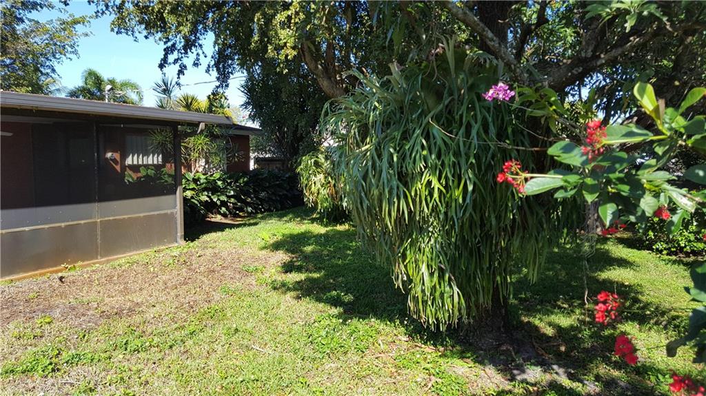 Beautiful 3 bedroom/2 bathroom home w/ fenced-in private backyard. Double French Doors off Kitchen/dining area open to screened-in porch. Kitchen updated w/ stainless steel appliances. New windows. Roof replaced (approx.) 2006. Both bathrooms updated. Central A/C. Tile throughout. Plenty of storage/closets. Features large exterior laundry room. Screened-in porch offers great privacy in lushly landscaped backyard. Beautiful trees & stag horns adorn the backyard. Accordion shutters