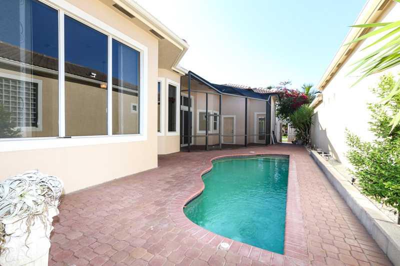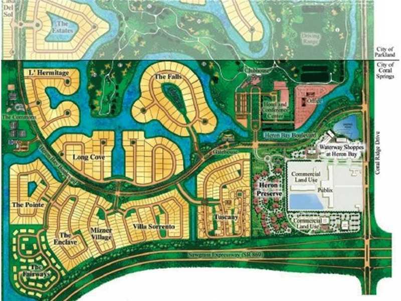 Upgrades galore! Exceptional 4/3/2 courtyard style house in Heron Bay,Enclave on oversized,premium corner lot.Paved driveway,one story, with screened in patio. Heated pool. Pergo flooring throughout, tile only in kitchen,bathrooms and laundry. Granite co untertops in kitchen and all bathrooms. Matching granite windowsills and shelving. Built in floor-to-ceiling bookcase and cabinets in Living Room. 42" upgraded Kitchen cabinets, new stainless appliances. Generator hookup in garage.1yr appliance warranty