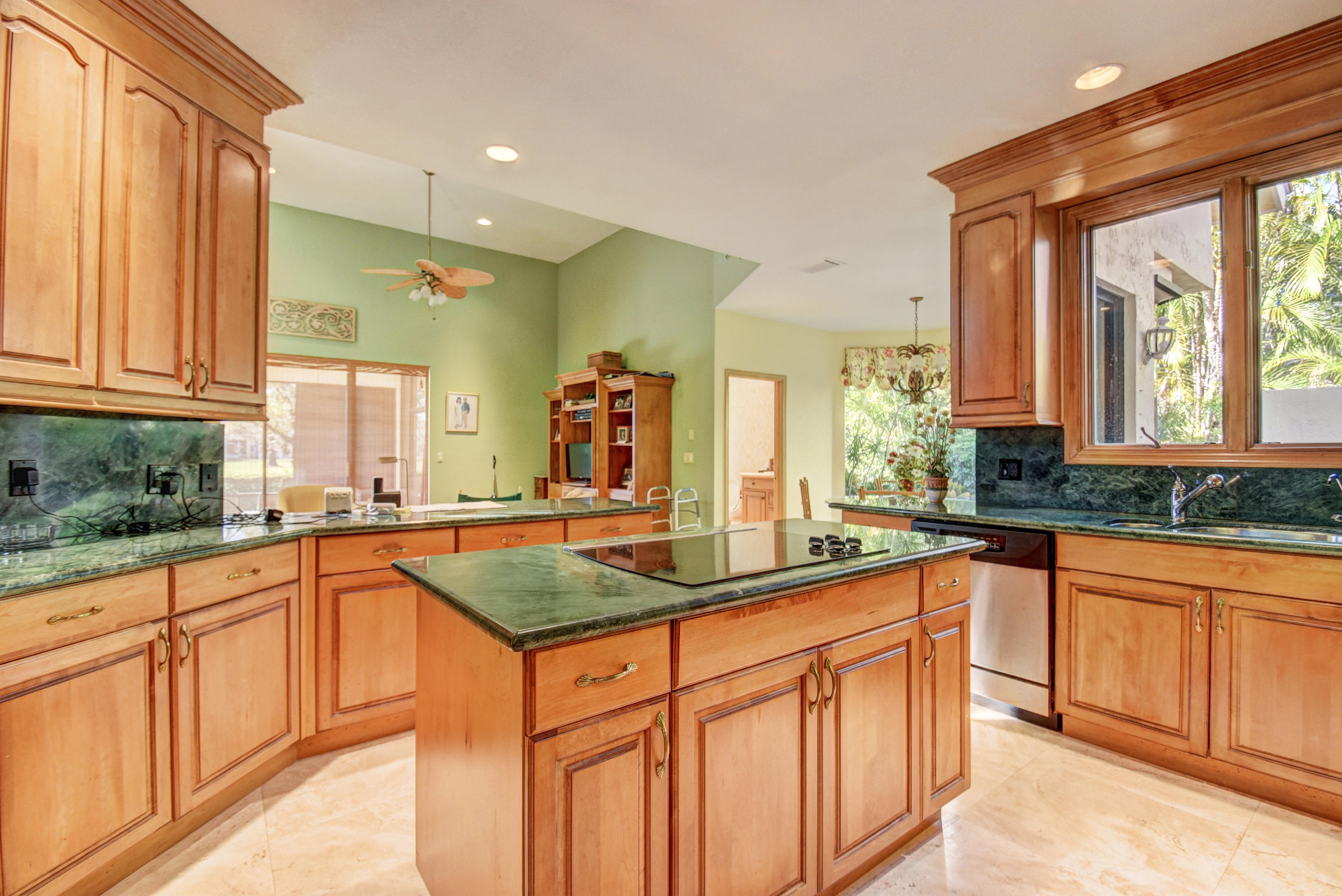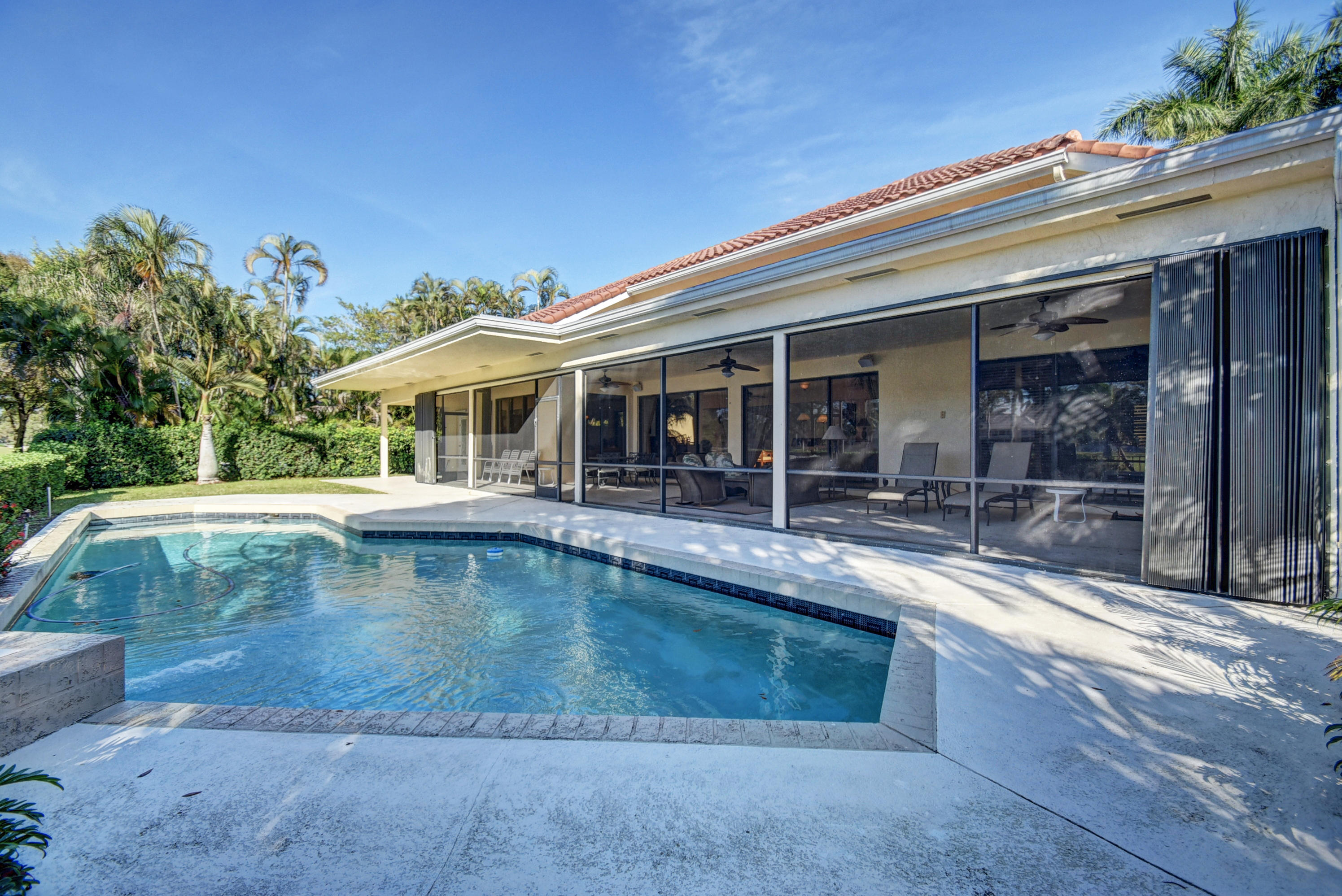 PRICE REDUCTION. MOTIVATED OWNER. OPEN GOLF VISTAS FROM THIS TOTALLY UPDATED 1 STORY POOL HOME. 4 BEDS. 3/1 BATHS. 2.1 CAR GARAGE. 24'' SATURNIA MARBLE FLOORING THROUGHOUT. NEW ROOF. UPDATED WOOD & GRANITE KITCHEN. SS APPLIANCES. UPDATED GRANITE & WOOD BATHS. HURRICANE SHUTTERS. PLANATION SHUTTERS. CEILING MOLDINGS. LOTS OF LARGE OUTFITTED CLOSETS. LARGE SCREENED AND UNSCREENED PATIO WITH HEATED POOL. NEW PAVERS ON SIDES. HURRICANE UPGRADED GARAGE DOORS. CENRAL VAC. THIS IS A MUST SEE HOUSE. WELL KEPT. MINT CONDITION.
