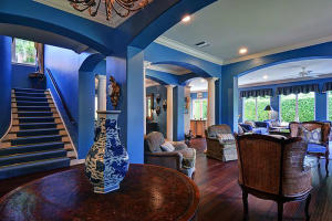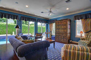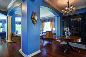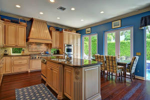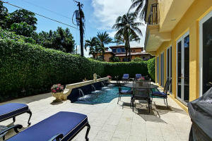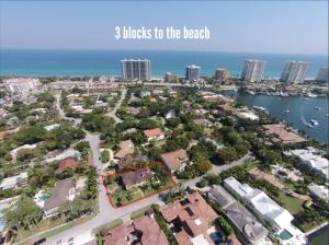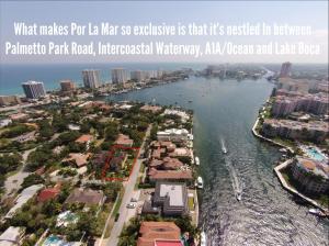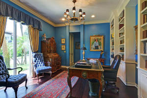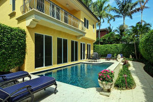 Nestled amongst the large estates in Por La Mar, this must see house has a Mediterranean exterior and a Town and Country interior. Quick walk to the beach, shopping, dinning and the Boca Raton Resort and Club. Big corner lot with a beautiful, sunny 14x26 pool. Open floor plan with lots of natural light. Hardwood floors throughout, a huge living room and a formal dining room. The eat in kitchen is a chef's dream with tons of storage, large center island, granite countertops, Scottsman icemaker, professional 6 burner gas range and double ovens. The fourth and only bedroom on the first floor is currently used as a library/office with an ensuite bath and an entire wall of custom bookshelves and cabinetry. Upstairs there is a large master suite with 2 walk in closets, fireplace and balcony.