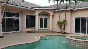 Spacious 5/4.5 Courtyard Style home on oversized lot with large back yard. Set on a cul de sac street this custom executive home features a brand new kitchen with Stainless Steel Appliances. Master bath has been recently updated. Recently painted inside. Main Living areas feature Saturnia Marble Floors. The Dining Room is expanded and will accommodate the largest of gatherings. The courtyard area features a heated pool and cabana bath and guest house. Impact Glass and/or Accordian Hurricane shutters protect this home from the elements. 3 car garage. A must see.
