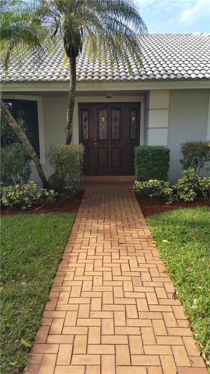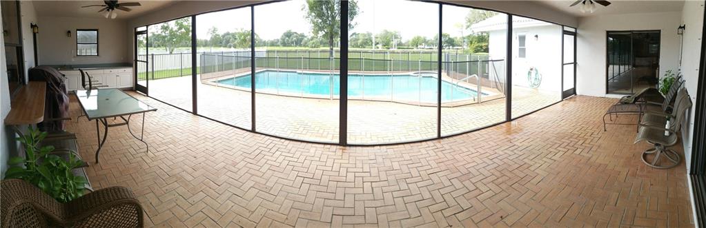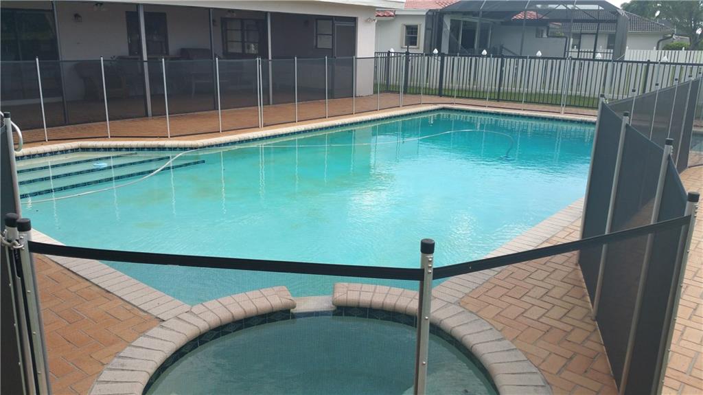 Spacious 4 bedroom, 3 bath home on .42 acre lot on C-14 canal and directly adjacent to community park with playground and walking trail. In-ground pool with spa and huge screened patio. Circular driveway & oversized 2 car garage. Custom rough cedar trim throughout & cedar built-ins around brick fireplace. Vaulted ceilings in living and family rooms. Lots of natural light. Master bath w/ huge marble roman tub. Ceiling fans throughout. Full hurricane shutters.