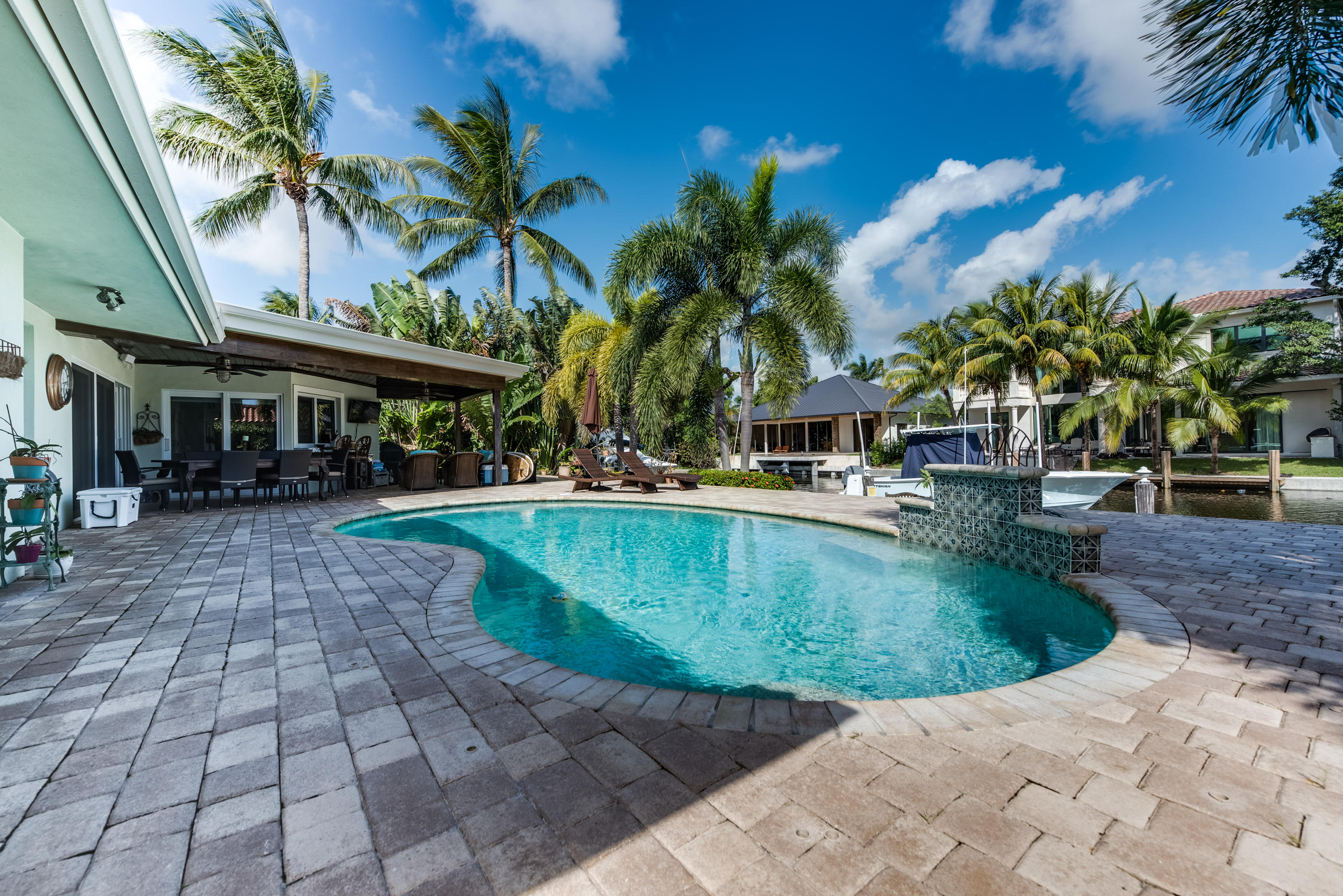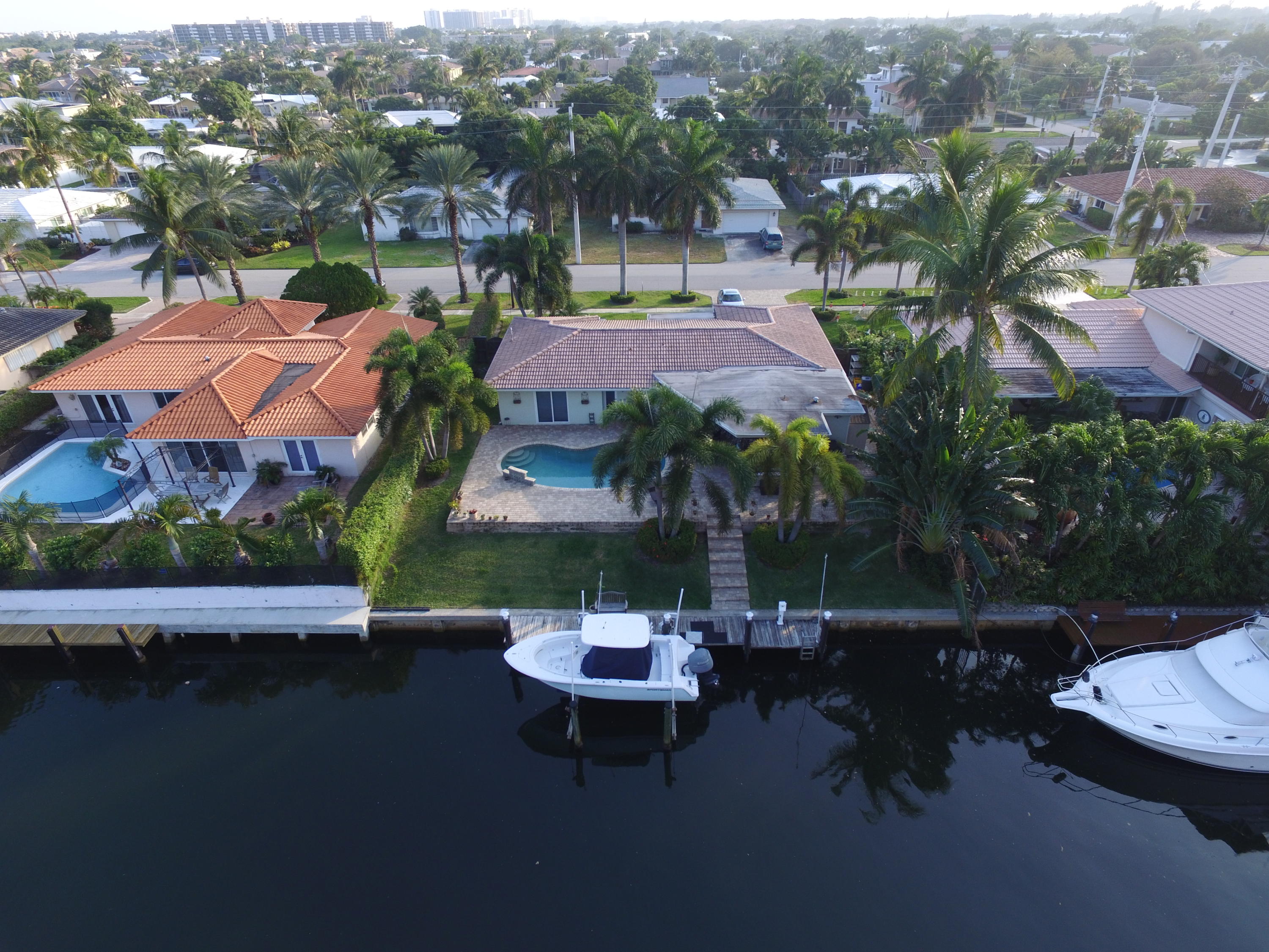 Beautifully Appointed Home on Wide Deep-Water Canal with 80' of Water Frontage and 14,000 Boat Lift. Impact Windows and Doors, 14 X 14 Bonus Room with Large Closet can easily be used as a 4th Bedroom, Terrazzo Floors, Updated Master & Guest Bath, Designer Built-In Closets, High End Light Fixtures, Hunter Douglass Window Treatments, Security System, New Cooktop, A/C 1 Year Old, Tankless Water Heater 1 Year Old, Updated Electrical Panel, Large Brick Paver Backyard Area with Wood Stained Covered Patio, Pebble Tec Finished Swimming Pool with Waterfall & Jets. Brick Paver Driveway, Lush Landscaping, Stucco Bands. Minutes to Lake Boca, Boca Inlet, Mizner & Atlantic Ave. Don't Miss This One!!!