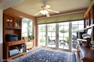 Panoramic golf views! Beautifully renovated,impact glass across back, also accordion shutters in front. This 2 bed, two 1/2 bath plus den residence features vaulted ceilings, custom closets, marble & granite baths, spa tub, frameless glass, marble patio plus upstairs deck with endless views.