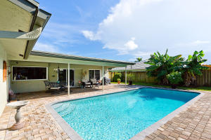 Move-in ready! Best value for dollar in east Boca Raton! Spacious 4/2 split plan layout with private master suite. Features laminate & tile flooring, updated kitchen, granite countertops, recessed lighting & view to huge pool, patio and yard made to entertain. Fresh paint. Open master with dressing area. House has nine closets - lots of storage! Dining, kitchen and family open to well-landscaped back yard with large saltwater pool and concrete hand-laid paver patio, room for boat. Hurricane impact windows and doors & CBS construction offer peace of mind - sound house in great shape that has been well maintained. Same owner for 33 years. Location is the best of East Boca Raton: A-rated schools, close to restaurants, shopping interstate and beaches. One street north of Palm Beach Farm