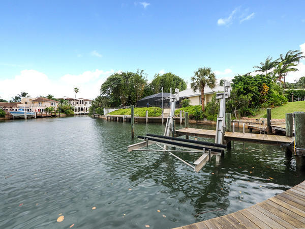 WOW! Paradise found! If you are looking for a truly exceptional custom built waterfront home - in immaculate condition - then this is your ''paradise''. Bring your boat! There is a private deep water dock AND a boat lift! A 30-foot boat may be docked - and the lift holds up to a 10,000 pound watercraft! There are NO fixed bridges! The resort-style free-form infinity-edge heated pool has been recently diamond brited. Dine al fresco - all the time - under the large covered patio. There is a summer kitchen too! This exceptional home is entered via a gated garden courtyard. Upon entering one is flooded with an abundance of natural light - due to the double height living room - and numerous floor to ceiling window walls! The gourmet kitchen features a separate Sub Zero refrigerator and freezer