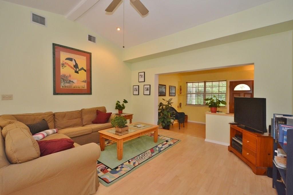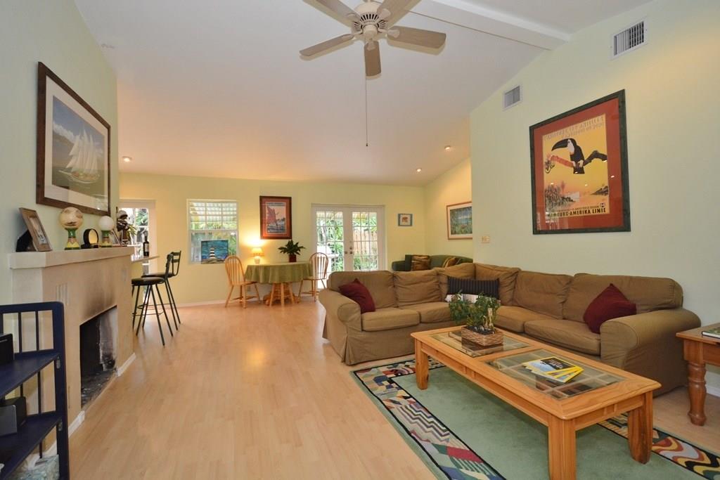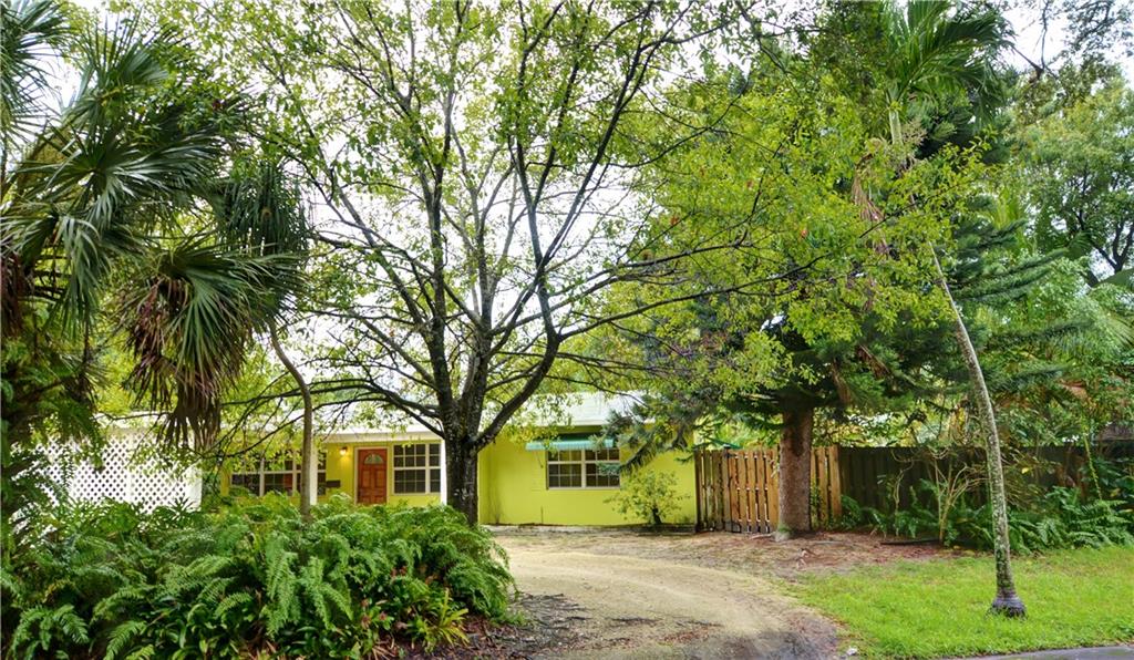 Tropical Pool home on a large corner lot in sought after Shady Banks! 2 bed 2 baths, high vaulted ceilings, open living area, fireplace, laminate floors impact windows & French doors, open kitchen w/ ss appliances, corain counters & breakfast bar. Double French doors open to outdoor entertaining area w pavered patio & tropical landscaping around the pool. New roof in 2012, covered parking/carport.Fully fenced for tranquility & privacy. A great home for entertaining &minutes to downtown Las Olas & Beach!