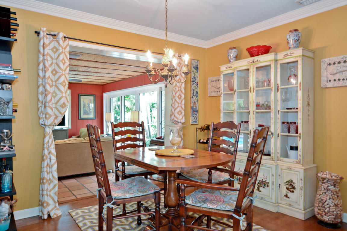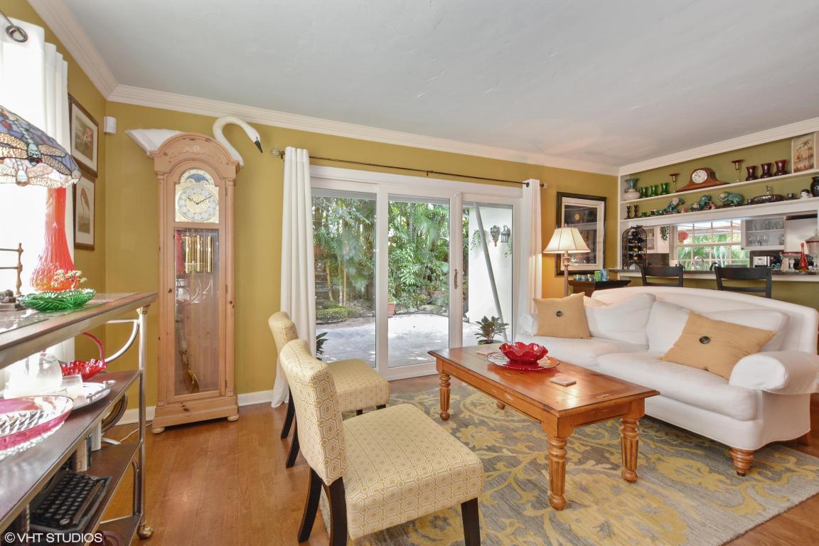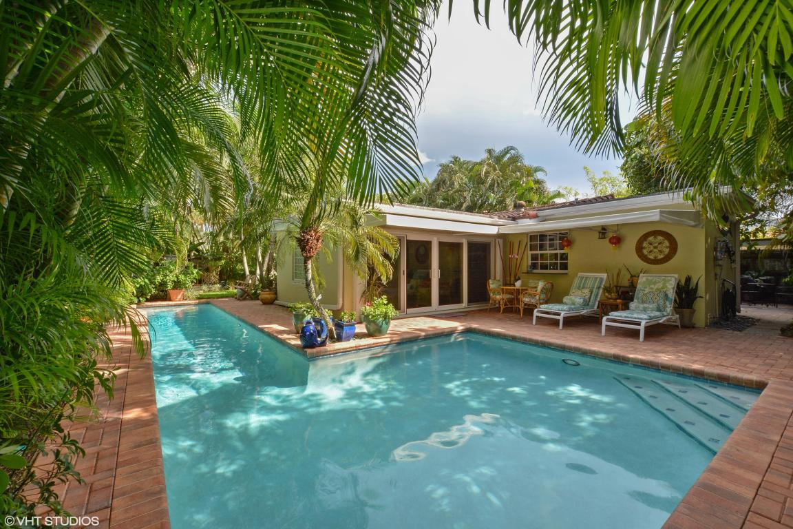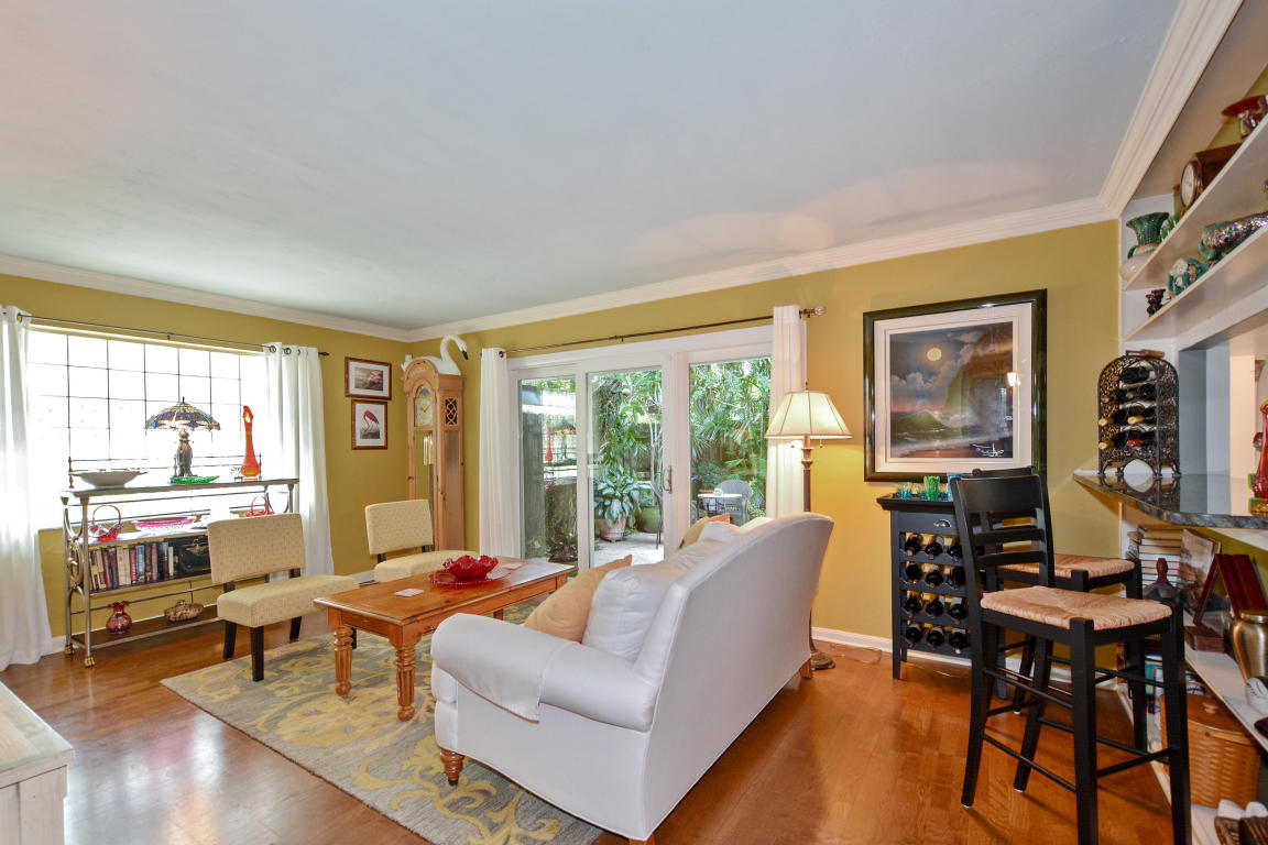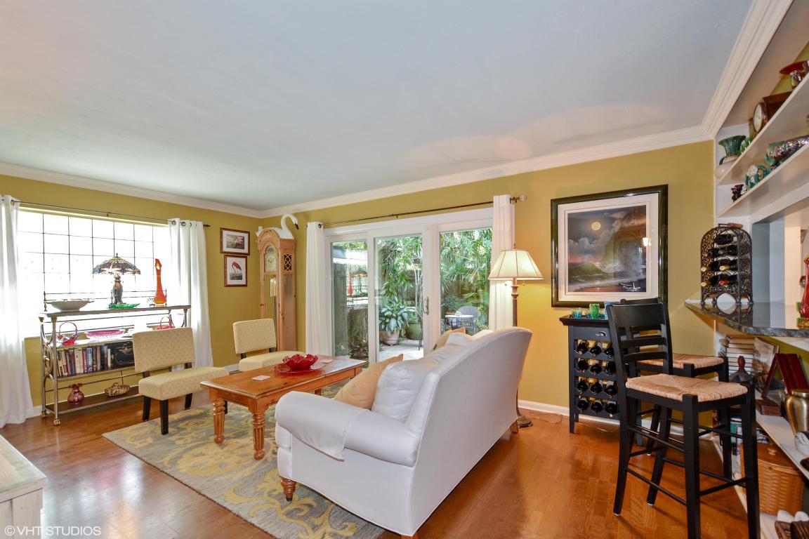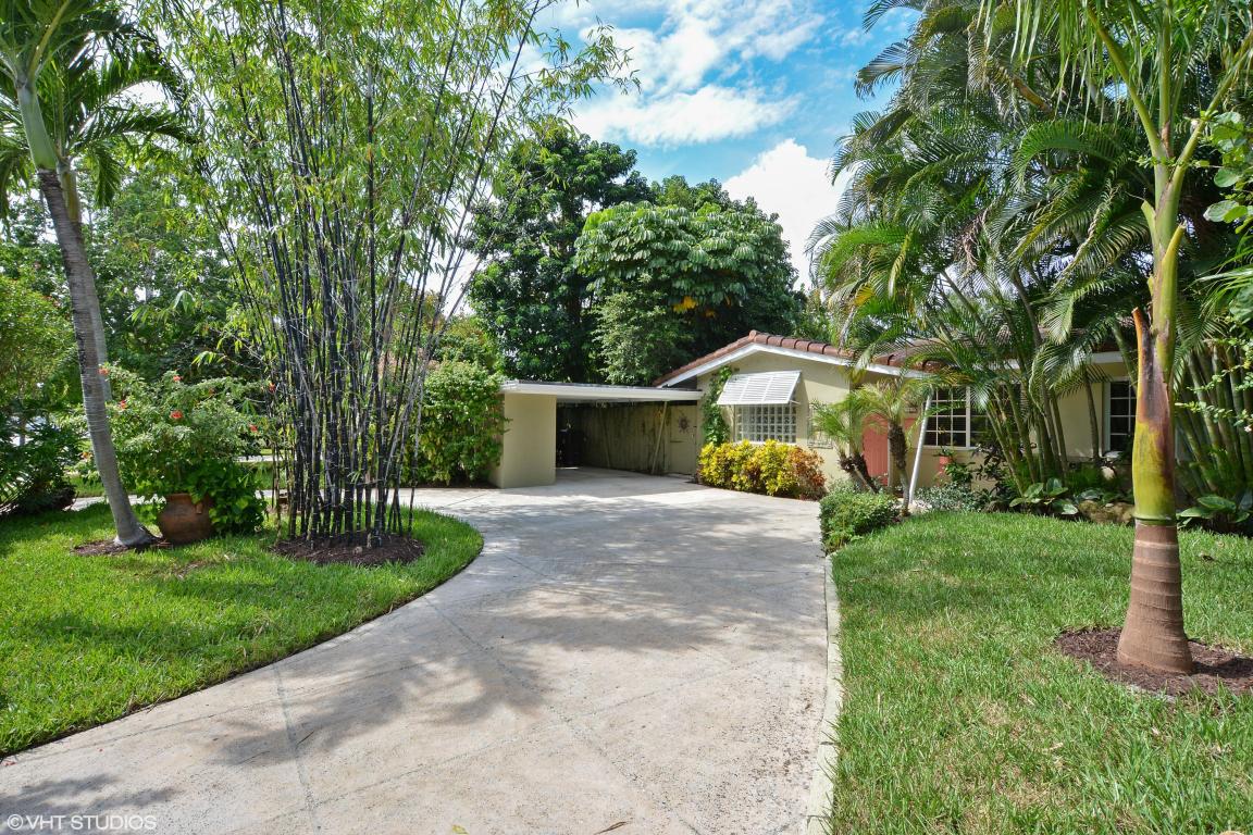 Stunning Tropical Retreat! This South of Southern 3BR/2BTH pool home offers privacy and convenience. A circular driveway leads to a covered portico with entry to a fabulous living area with oak floors and garden views. Custom kitchen featuring granite counters, stainless steel appliances, gas range, ample storage and recessed lighting. Adjacent to the kitchen is the dining room and a beautiful family room surrounded by new sliding doors, bringing the outside in, opening to a fantastic covered patio and private courtyard with fountain. The master bedroom is enhanced with a new ensuite bath and custom closet. The second bedroom is spacious and has a designer corner window. The third bedroom is used as an office. The 42 ft. long salt water lap pool is graced with a new paver patio, Tiki hut