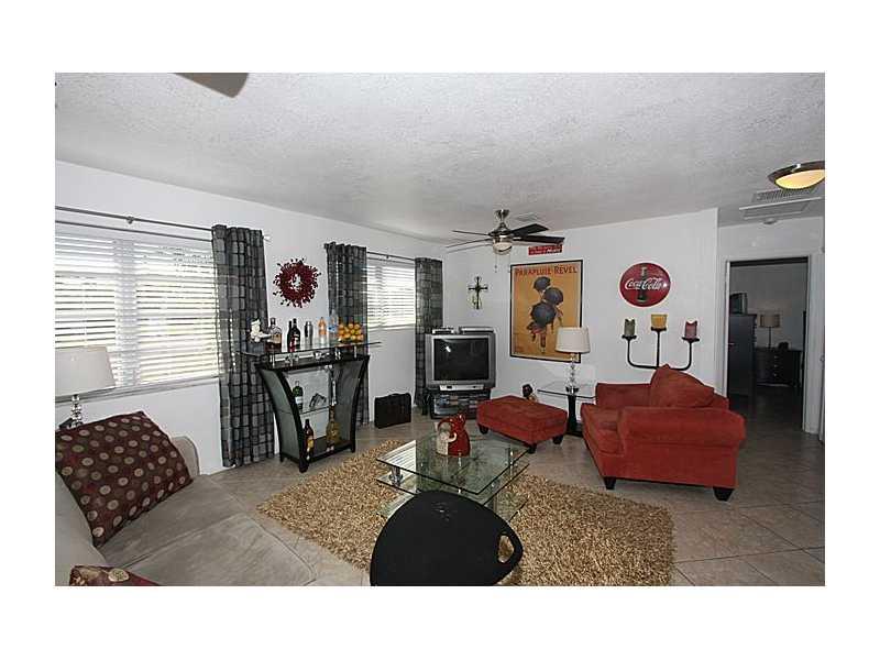 3rd bedroom is open & makes a big living room so now it is a 2 bedroom. This is a perfect house New Top of the line appliances, New A/C, Tiled Thru-out, incredible Granite counters with open kitchen, eat up bar. Everything is new A/C, tank less hot wate r heater, Front loading Washer and dryer, accordion shutters The owner likes to call the yard a park as the lot seems to be a double lot and has a beautiful sliding glass door to a great covered patio. Room for a 2nd bath.