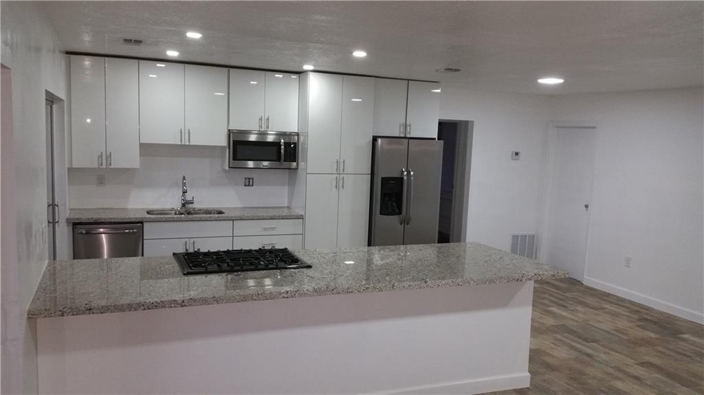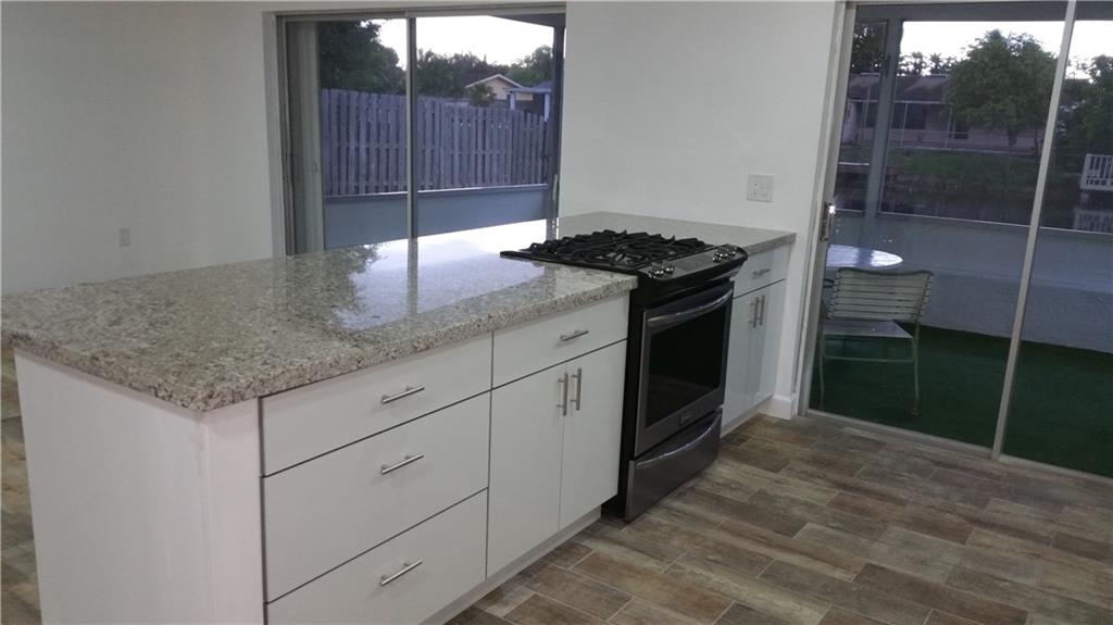 WATERFRONT 2/2 REMODELED HOME IN QUIET COMMUNITY OF SUNRISE, MODERN OPEN FLOOR PLAN, GORGEOUS ALL NEW DESIGNER KITCHEN & BATHS, TILE FLOORING THROUGHOUT, LARGE BEDROOMS, LARGE SCREENED PATIO FACING LAKE, A SPACIOUS BACKYARD DECK FOR BAR-B-Q AND FUN IN THE SUN, 1 CAR GARAGE HAS WORKSHOP AREA + LAUNDRY. GARAGE COULD EASILY BE YOUR 3RD BEDROOM IF NEEDED. LARGE YARD WITH ROOM FOR A POOL, NO HOA