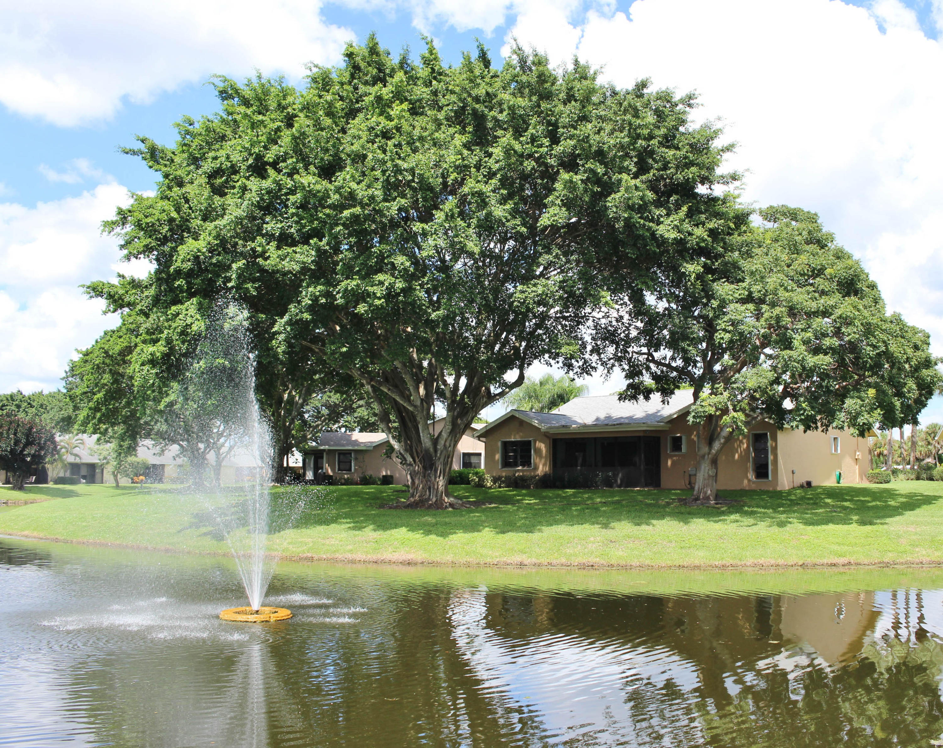 Grand and very spacious with beautiful lake views from this 3BR/2BA plus den in this single family home w/2 car garage nestled on a cul-de-sac in an active 55+ community. Most sought after Larchmont model. Magnificent very peaceful lake and clubhouse views from this lovely home, huge yard (.26 acres, large shade trees, park like setting from front of home. This lovely home features: Newer custom kitchen cabinets (2006), Security system, Miami/Dade code accordion shutters on all windows w/roll down shutters on lanai, reinforced/insulated 2 car garage door (2007), AC installed August/2010, newer electric water heater installed Jan/2014, appliances 2007, refrigerator 2 yrs old, berber carpeting and ceramic tile throughout. Enjoy your Florida's balmy weather from your screen enclosed lanai.