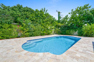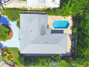 Located in the beautiful, premier Singer Island community of Palm Beach Shores , The best little town in Florida. This newly-remodeled contemporary 4 bedroom, 3 bath home with professional and lush landscaping is located on a private , quiet, oversized corner lot and is an easy one-block stroll to the white sandy beach.Once you Drive-up the circular driveway you will enjoy this spacious home that has plenty of natural light throughout. The sliding doors from the living room, master bedroom and eat-in kitchen area take you out to the travertine marble deck and brand new pool. This Beach home has been completely remodeled with beautiful custom porcelain tile throughout, granite and quartz countertops, maple cabinetry, an eat-on island, new stainless steel appliances,