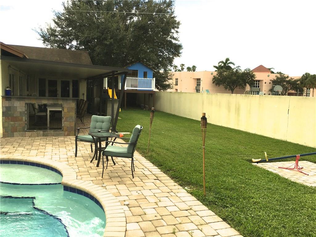 Adorable 3/2 home with freestyle underground pool. Home has a 2 car garage, outdoor bar/bbq, large patio, kids playground, and shed, storm shutters, sprinkler system. Water heater, 2 electrical panels, pool pump have been replaced. Inside the home has been beautifully remodeled with tile and bamboo flooring. Kitchen has been upgraded with newer appliances, ceiling fans and light fixtures. Low HOA of 36.00 quarter. This home will not last, great community near schools, grocery, and restaurants.