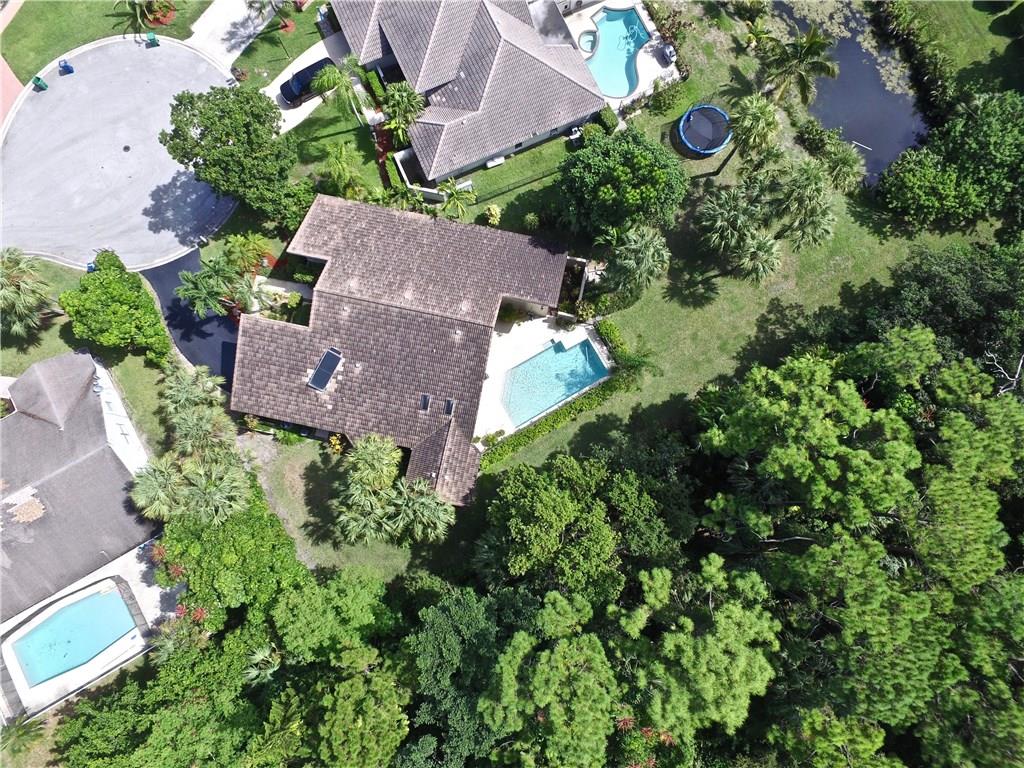 Feathertree Coral Springs best kept secret pristine home on oversize cul-de-sac canal lot backing to Sherwood Forest-the home boasts soaring ceilings impact glass windows & doors porcelain tile on diagonal in liv area-formal din rm- breakfast area w/bay window overlooking woods-fam rm overlooking pool & woods-bonus rm off fam rm- remodeled master bath & guest baths-roof replaced '09-2 zone a/c-80 gal solar water heater- No HOA, -Living area square footage per City of Coral Springs bldg department