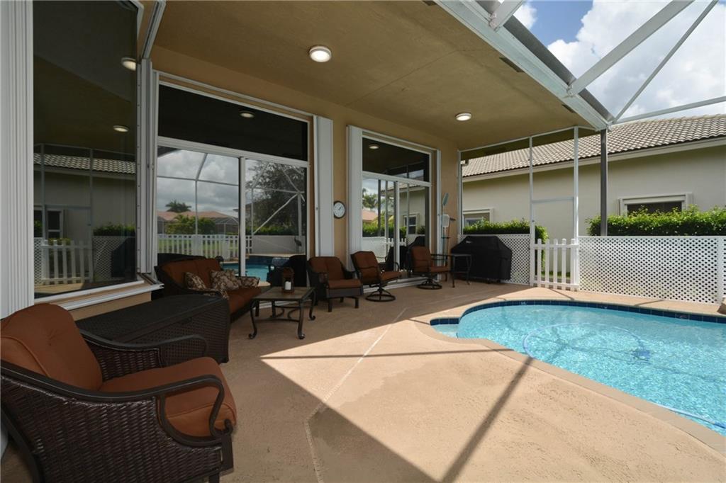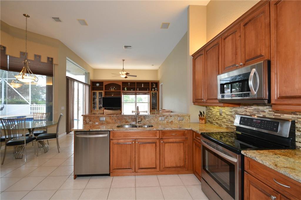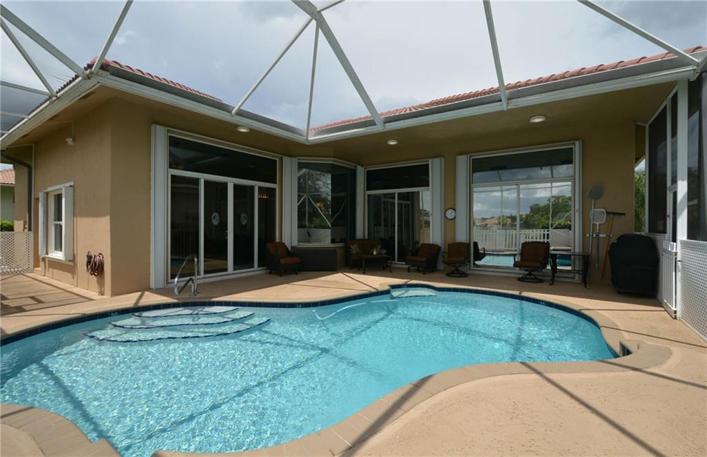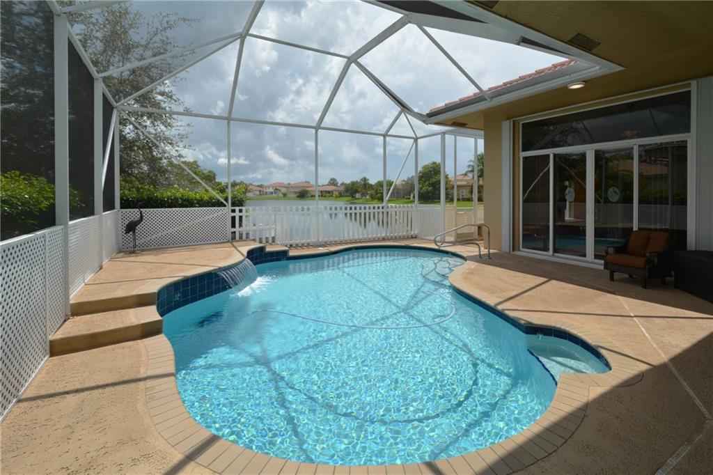 Fabulous 4 bedroom, 3 bath pool home with beautiful water views in Pelican Isle at Wyndham Lakes! Features include updated kitchen with newer stainless steel appliances & granite countertops; custom walk- in closets; recently painted inside & out; newer A/C; screened in salt water pool with new Diamond Brite finish; 3 car garage & paver driveway; maintenance includes lawn, bushes & sprinklers. New water heater. Accordion shutters. Fenced dog run. A-rated schools.