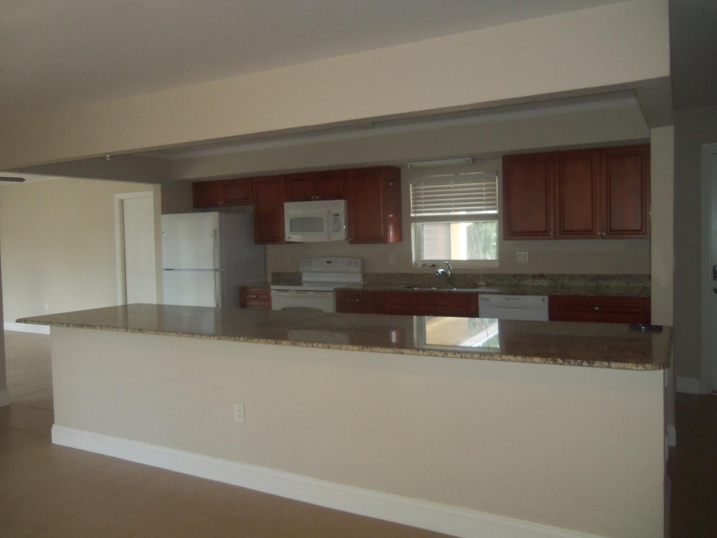 3/2 with renovated kitchen with huge island overlooking spacious living room and large dining area off the kitchen. Great for entertaining. Master bedroom with en-suite bathroom with separate storage & closet.Impact windows,doors and roof installed in 2012. 1 1/2 car garage with driveway that can accommodate parking for 4 vehicles. Owner must occupy the home.