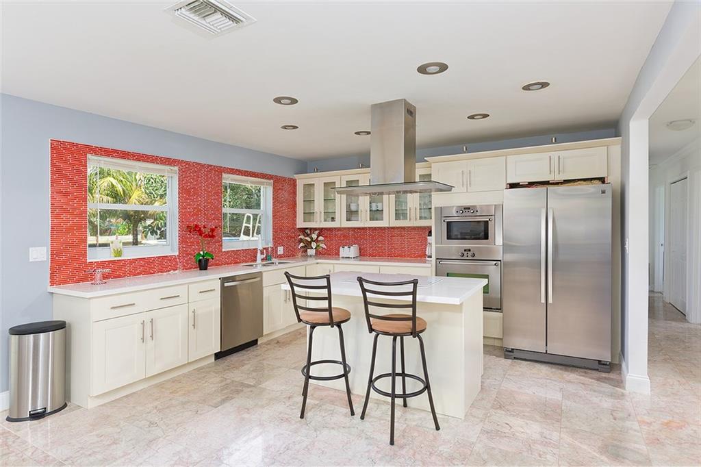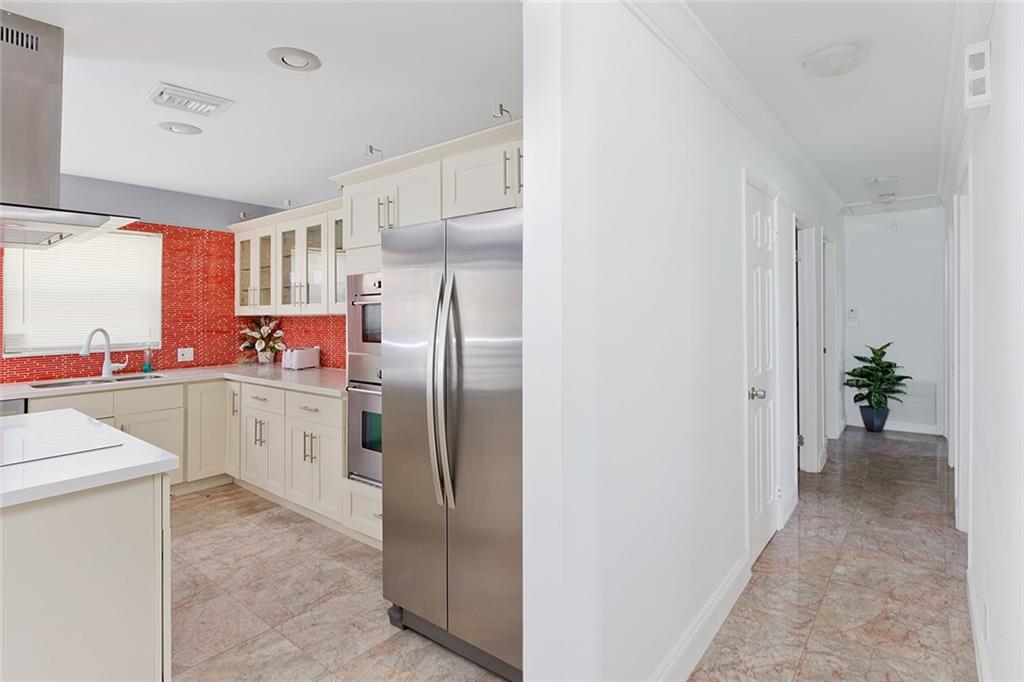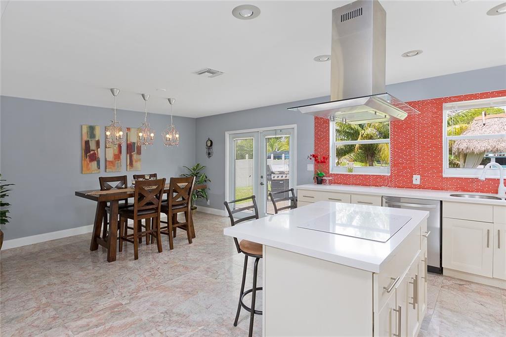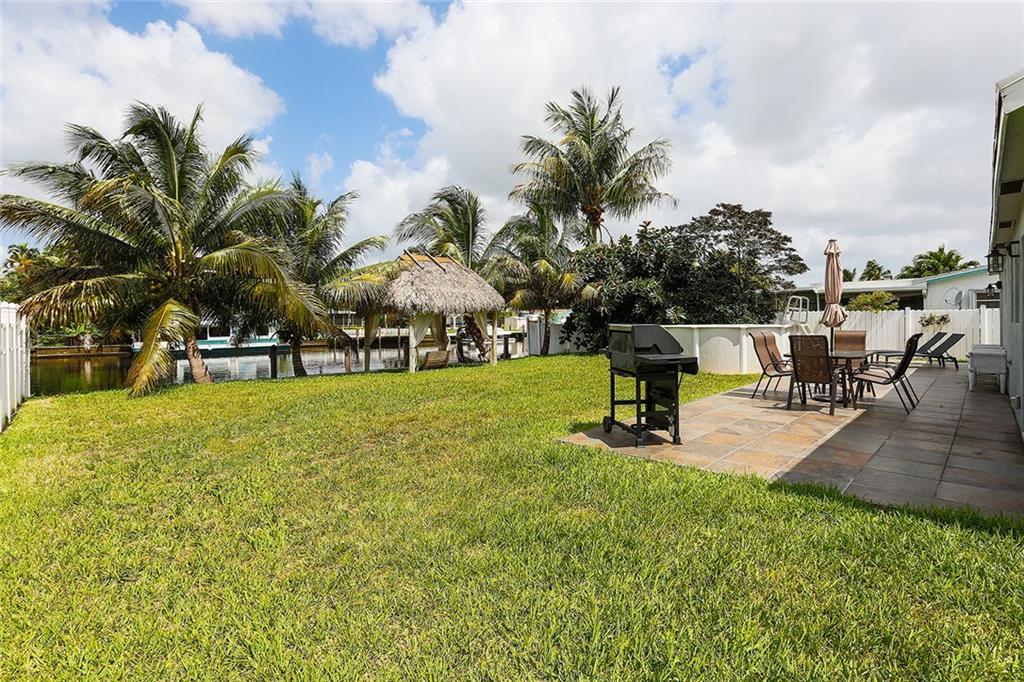 Gorgeous waterfront home totally renovated with dockage and ocean access. This cul-de-sac house comes furnished with 3 large bedrooms 2 beautiful bathrooms. A large opened kitchen with stainless steel appliances, a cooking island and a beautiful view of a large canal. Marble floors and laminate woods in all the bedrooms. Fenced in tropical backyard with a heated above ground pool and a covered sand Tiki area. Comes with a 65 feet deep water dockage area. Near major highways, airport, beaches & marinas.