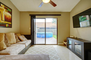Beautifully updated 3/2 villa with a large fenced in yard. Split layout with porcelain floors throughout, kitchen updated with granite & S/S appliances. Newer A/C & Hot water heater, digital alarm & nest thermostat. Ikea closet organizers that can stay with the home, new washer & dryer, 2 assigned parking spots right outside your door, roof 2006. Home is in impeccable condition & in great location!