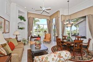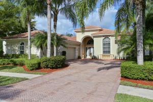 Gorgeous lot, one of Ibis' best, with custom-built home on a private cul-de-sac lot in the prestigious neighborhood of Ibis Isle. This property offers expansive waterfront and golf views overlooking the fifth hole of the Heritage golf course.2 BRAND NEW LENNOX A/C UNITS JUST INSTALLED! Home features four bedrooms plus den and five full baths, formal dining room and wet bar. Neutral tile, custom window treatments with large kitchen featuring Corian counter tops and 42''upgraded cabinetry. Sliding glass doors lead to a lanai area with phantom screening which overlooks the open pool area with private cabana bath. Full 3-car garage with storage built-in and accordian shutters throughout.