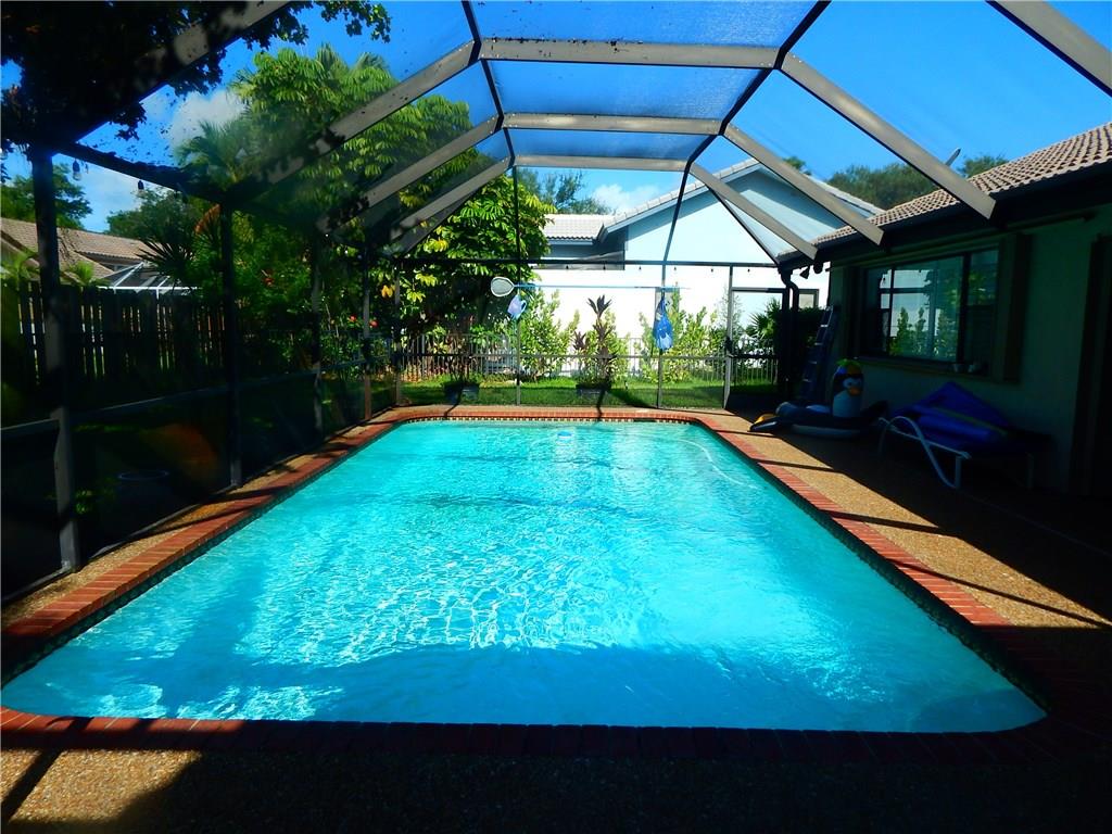 Cypress Glen at it's finest. Upgraded 4 bed 2.5 baths pool home in the heart of Coral Springs. Fabulous updated modern solid wood kitchen with high end granite and GE Profile SS appliances + wine cooler. Eat in kitchen, hardwood floors in all the bedrooms. Wood Plantation shutters throughout. 24" tile laid on diagonal. Vaulted ceilings. Screened in pool and large covered patio. Fenced yard. Accordion shutters. 2 car garage and paved driveway. This one will not last, make it yours today!