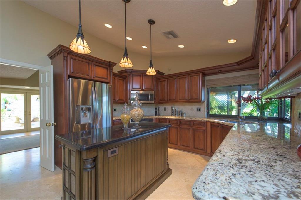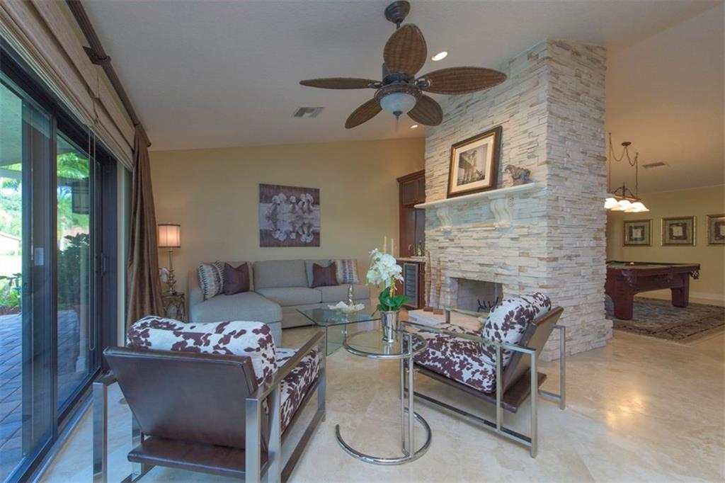 Well-appointed and updated waterfront pool home w/ 216 ft of lake frontage,nestled within the quiet enclave of Glen Oaks. Stamped concrete driveway,culdasac & lush foliage.Features include polished marble floors,vaulted ceilings,custom kitchen,custom built-In's throughout home,double-sided stone fireplace,all baths upgraded,great kitchen/family room combo& formal living/dining,PGT impact windows & doors.Unique triple-split bedroom plan!The exquisite over-sized master suite makes up the entire 2nd floor.