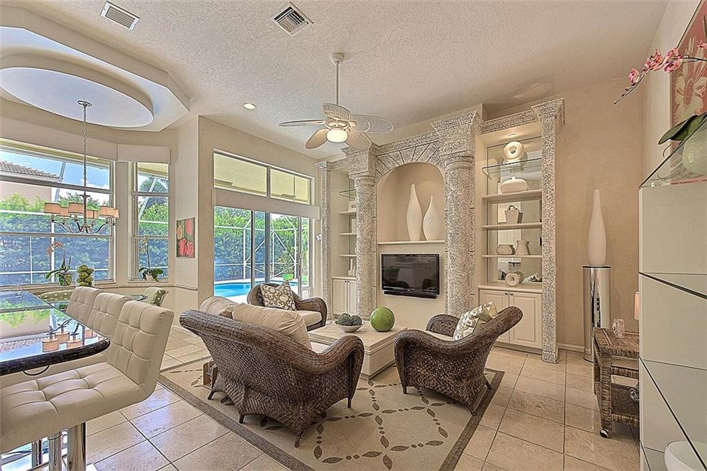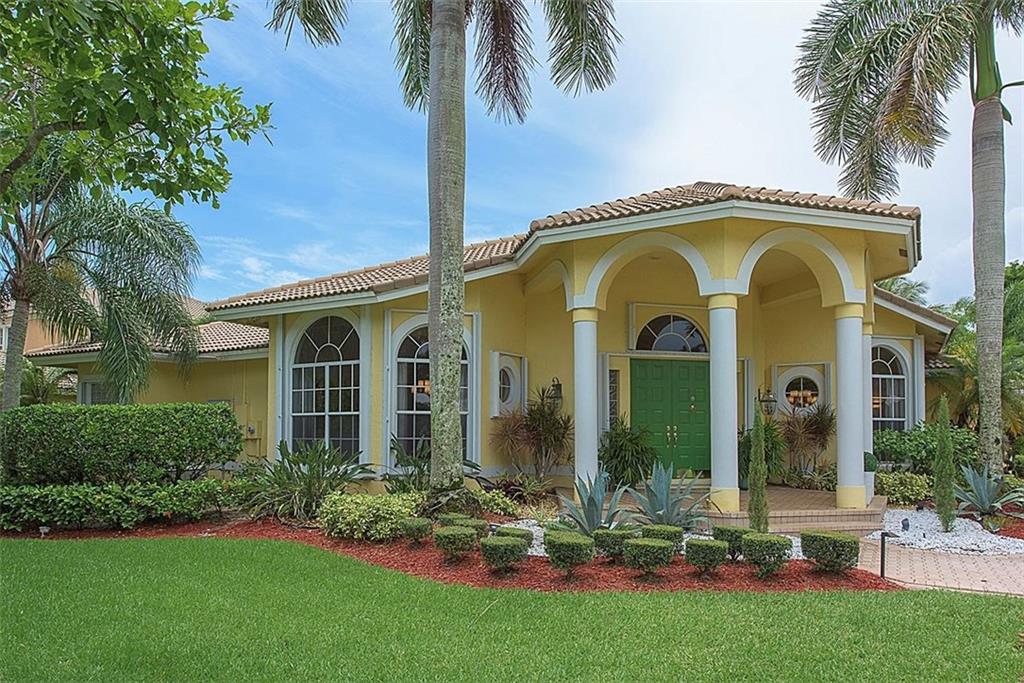 Elegant residence sits gracefully on private 1/3 acre lot in a gorgeous community of Coral Springs, THE ISLES AT LAKE CORAL SPRINGS. Architecturally grand with arched windows, intricate ceilings, stone floors. Living spaces are inviting and open, including granite wet bar plus sitting area/music room for grand piano or enclose for office. Accordion hurricane shutters & generator. Very private oversized heated pool with fountain, and large patio all screened. Access to lake, tennis, private playground.