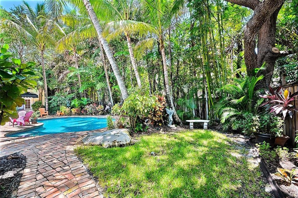 Highly desirable double lot in East Fort Lauderdale's subdivision of Rio Vista. Outstanding curb appeal & large tropical backyard boasts a free form pool, patio area & covered loggia framed by mature tropical landscaping. The charming & bright open floor plan is ideal for today's lifestyle. Formal living & dining rooms, large kitchen with a center island ideal for entertaining opens to the family room. Fully equipped 1BR/1FBA Guest house with kitchenette & great room. Sq ft from BCPA believed accurate.