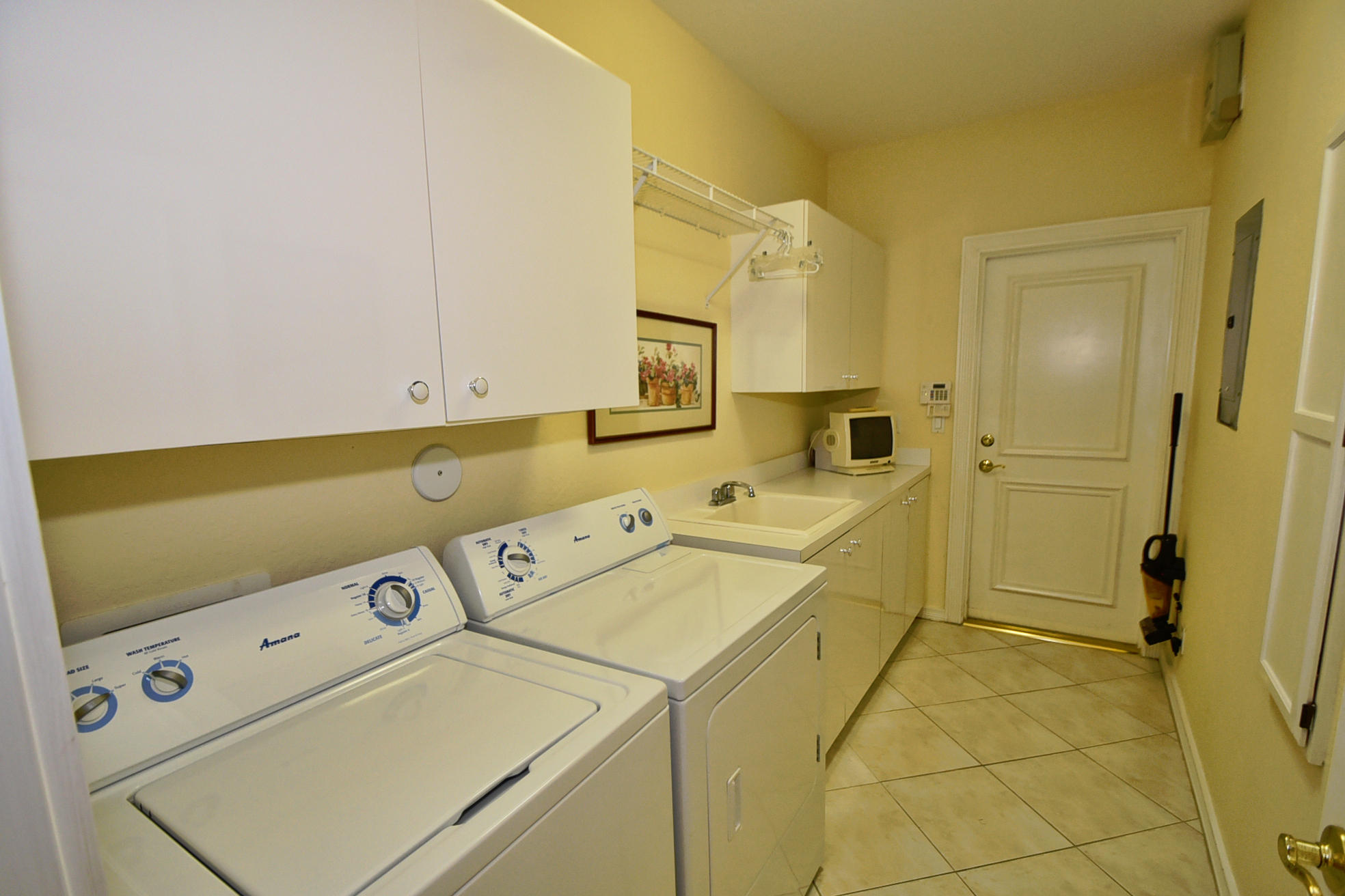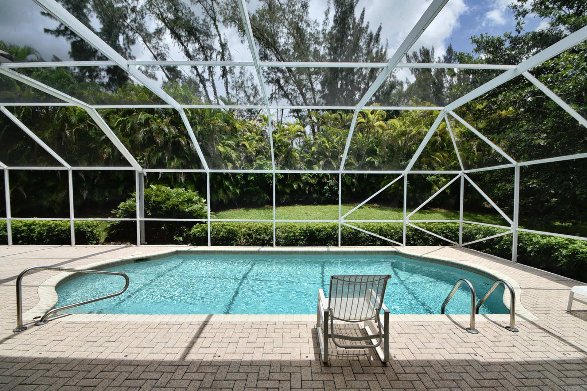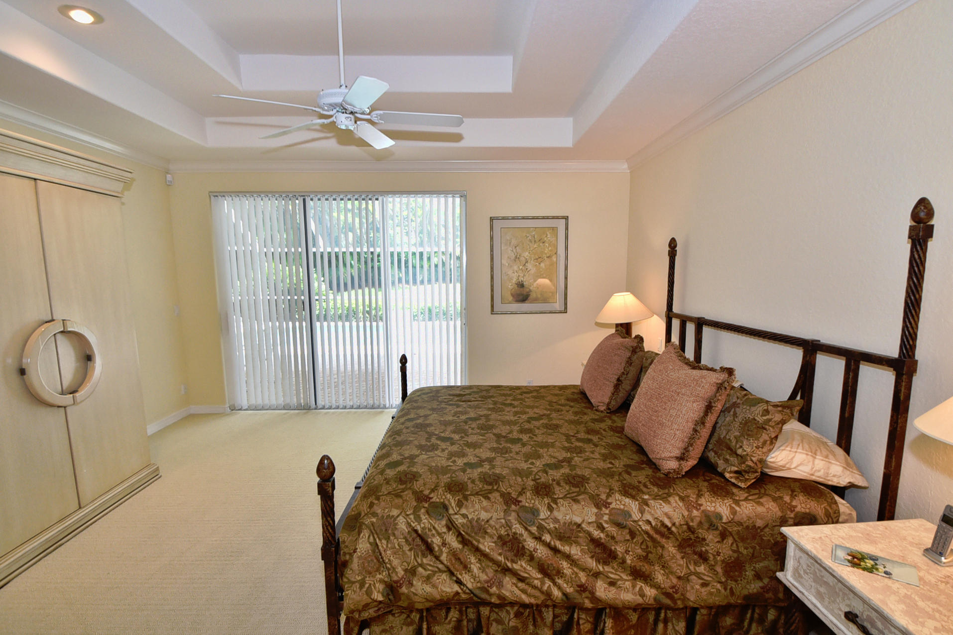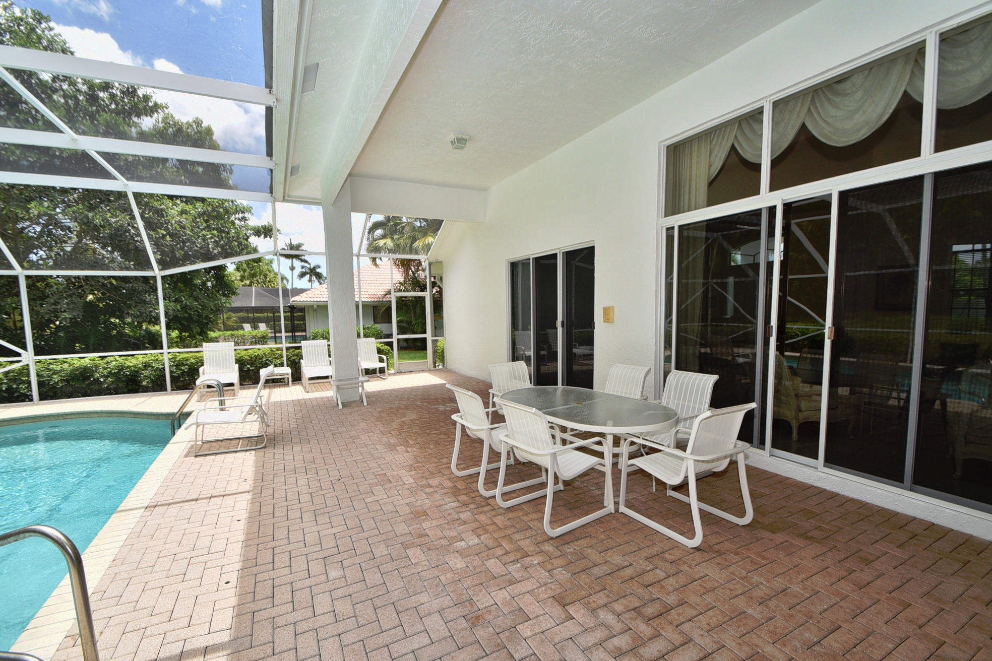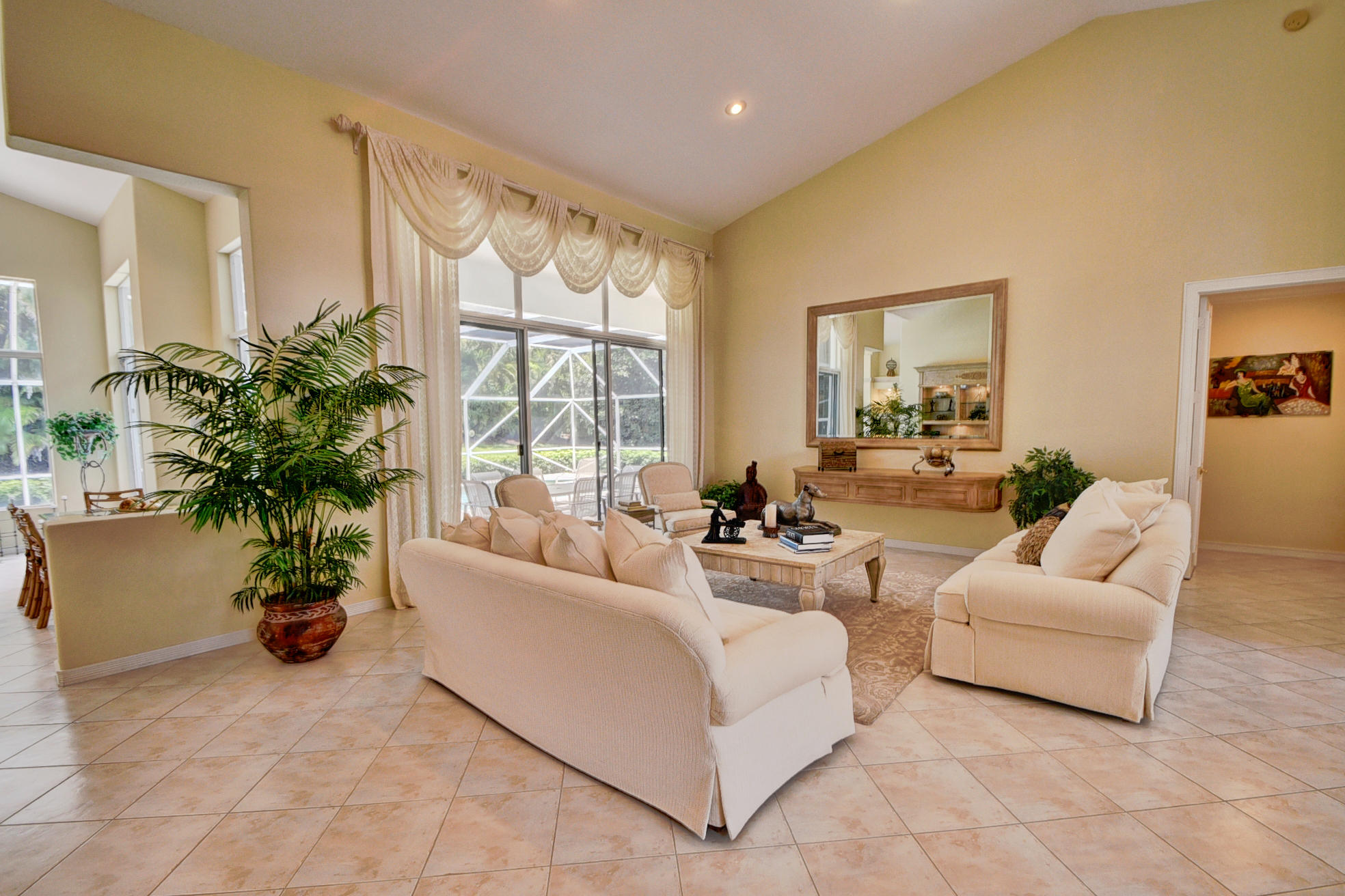 Wonderful, open & very bright 4 bedroom 3 full bath home. The 4th bedroom is a built-in office w/ designer wood cabinetry. Desirable white lacquer cabinets in the kitchen. Neutral tile floors, split bedrooms, custom built-ins, roomy closets, screened patio and a replaced roof. Topped off w/elegant circular driveway. JUST REDUCED! PRICED TO SELL! FURNITURE AVAILABLE.Mandatory membership country club-LIVE THE LIFESTYLE!!