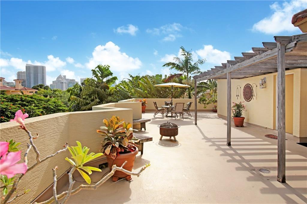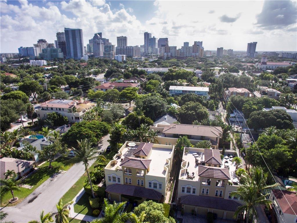 PERFECT LOCATION! Fee-simple, 3 bedroom, 2.5 baths, townhouse features a large 1,200+/- sqft. private courtyard PLUS the 1,250+/- sqft. rooftop terrace in desirable Victoria Park, only 4 blocks off Las Olas Blvd! Feels more like a house. 2 floors of living & 3rd floor = roof terrace w/ downtown views! High ceilings, tile & real wood flooring (stairs & 2nd floor), custom rod-iron railings, gourmet kitchen w/ dual-oven & granite counters, built-in closets & add. air-conditioned storage. Tiled 2-car garage.
