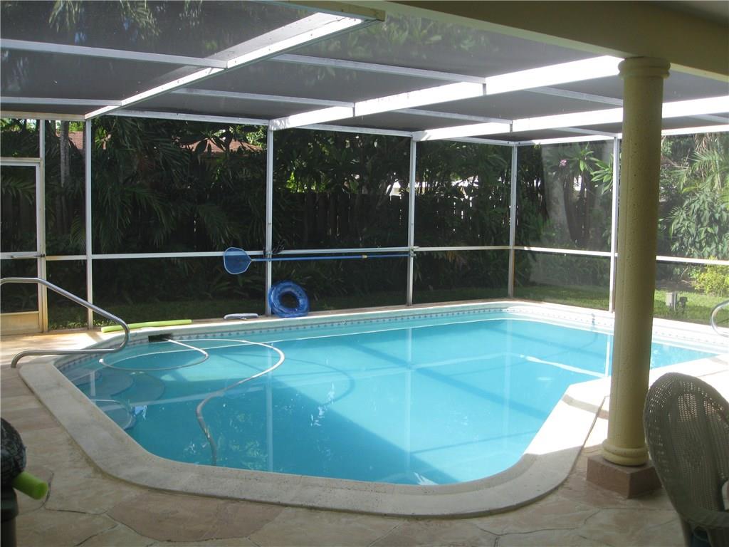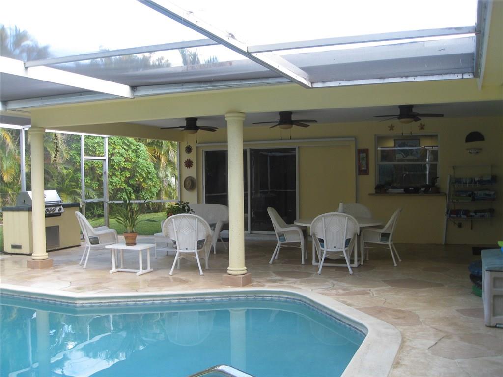 Well maintained 3/2 pool home in the heart of Plantation. New flat roof. Beautiful remodeled kitchen with tons of cabinets & granite countertops, with a pass thru window to the patio. Oversized, lot with screened pool & large covered patio, perfect for entertaining, includes bbq grill. Circle driveway & 2 car garage partially converted to large A/C room. Room to park rec. vehicles. Hurricane shutters & No HOA. Walking distance to Plantation Woods Park, library, tennis courts, & Kennedy Comm. Center.