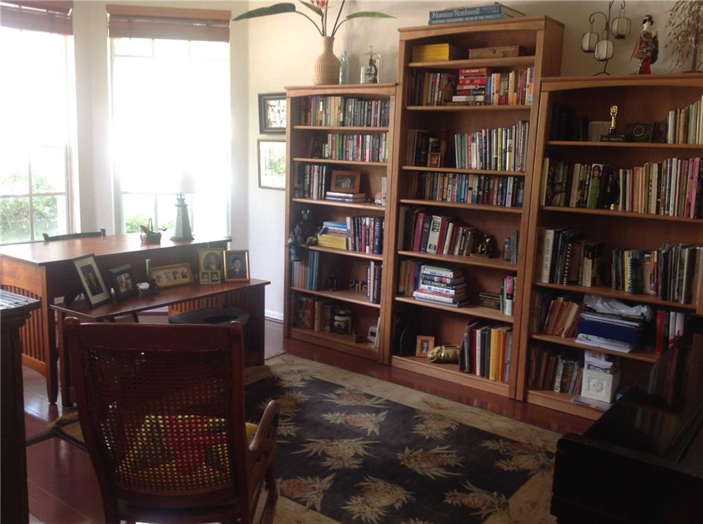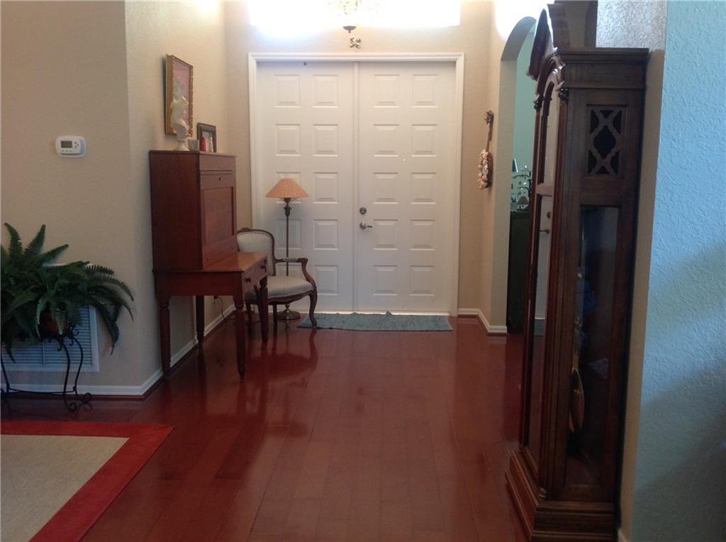 Pristine lakefront-wood fls-upgrades kit cab w/crowns, s/s appliances, dbl wall ovens,pantry,snack counter,breakfast area-huge walk-in closet in master w/organizers,master french dr to patio,master whirlpool style tub,sep shower-triple splt-upgraded onQ network sys-screen patio w/built-in BBQ-accordian shutters-generator hook-up in elec panel-sprinker on lake-4th bdrm being used as office/den-Bose surround speakers incl- exclude breakfast area light fixture and exclude garage cabinets-24 hr guard gated