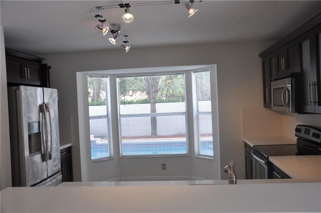 Two story cement house, 4 Bedrooms upstairs, Master Bedroom with master bathroom, walk-in closet, two living rooms, one dinning room. New Ceiling fans in all rooms, New lighting features in all rooms. Remodeled Kitchen with Spanish porcelana. Laundry roo m. TWO car Garage with reinforced garage door. New appliances Stainless Steel doors ( 3 doors Refrig, Dishwasher, Stove with flat panel heat surface.