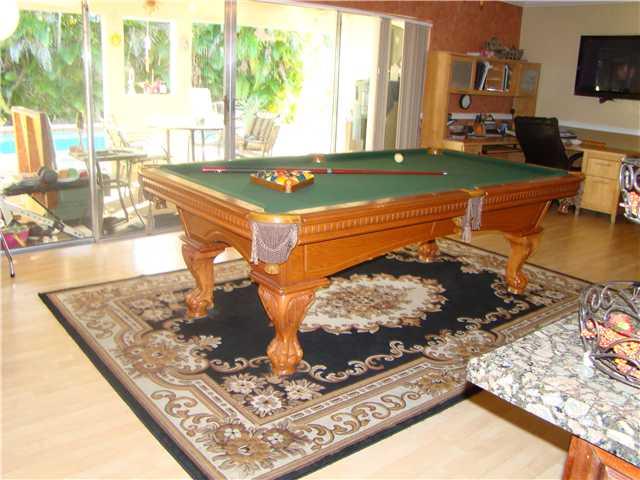 Lovely pool home in a cul-de-sac. 4Bedrooms(4th bedroom is small with closet) 2 baths. Guest bathroom is remodeled . Kitchen remodeled with new stainless steel appliances. Laminates floors. Impact hurricane windows in the master and back bedroom. Large fe nced yard private yard.Newer roof(since 2005). Wahser and dryer will be replaced.jacuzzi excluded. Ceiling fan in the living room will be replaced.