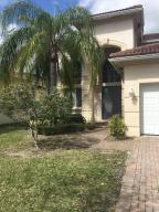 Beautiful Terracina home with guard gate and lovely lakes throughout community. 4/2.5 w/2car garage has tile floors throughout 1st floor living areas. Beautiful Italian tile inlay greets you as you enter w/vaulted ceilings and natural light beaming through the many windows. Separate living and dining and additional living/den area off kitchen. Kitchen has stainless appliances, granite and bar area, open concept and tons of cabinets. 1st floor master with his/hers closets, master bath w/dual sinks, soaking tub and separate shower and water closet. Laundry on first floor. 2nd floor has additional bedrooms and bath. The lot gives you much privacy as there are no back neighbors. Terracina offers security, close proximity to WPB shopping, airport, schools and beaches. Make this your new home!