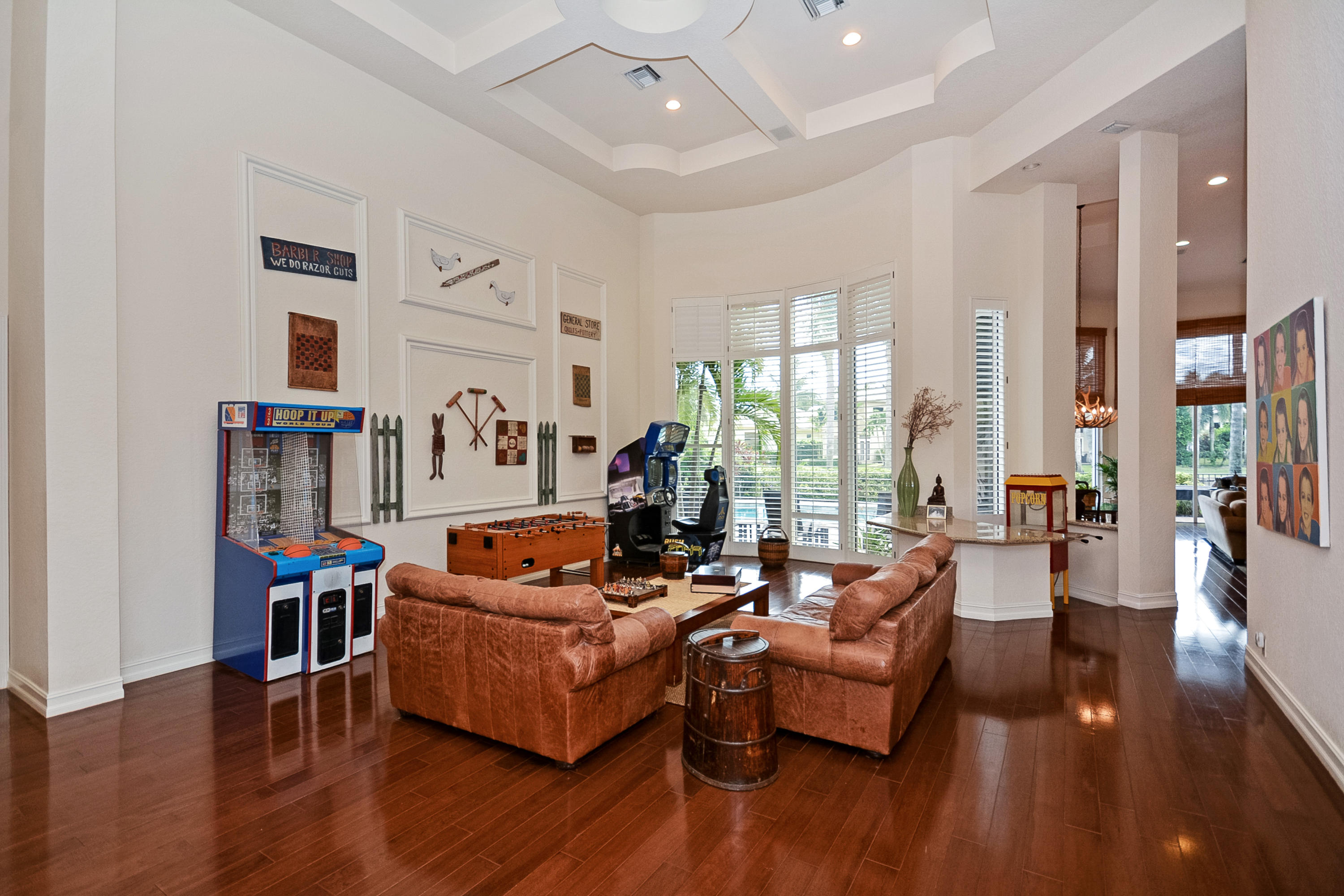 $5000 Bonus to Buyer Towards Initiation Fee. Stunning Lake Views! Custom two story 5 bedroom plus custom built in office, 5.2 bath estate with 2.5 car garage. Light & bright home with floor to ceiling windows throughout, beautiful engineered floors on main level, custom built-in in the family room, built-in buffet in the dining room, and volume ceilings. First floor master bedroom features a replaced carpet, separate sitting room, and two walk-in closets. Relax in the freeform pool or under the covered patio area with built in grill that overlook the lake.