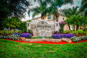 Sparkling lakefront property in Liberty Isles! Brand new stainless steel appliances, washer, dryer and Air Conditioning. This is an immaculate home and a VERY RARE single story model for the community. As you pull into your driveway notice the vibrant landscaping and colorful flowers that have been meticulously cared for. Enter the home and enjoy the balance of space and warmth with vaulted ceilings and exquisite fixtures. Find peace or entertain in your lakefront, fully fenced back yard featuring mature trees and spectacular sunsets. Then retire to your generous master bedroom. Liberty Isles is rich in amenities you would find at a 5 star resort, tennis courts, a grand pool, splash park, fitness center and gorgeous clubhouse. Enjoy peace of mind with 24 hour manned security gate.