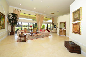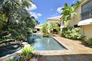 One of the most beautiful homes you will find at Broken Sound Country Club. This immaculate courtyard home has a fabulous panoramic golf and water vista view. Over 5,000 Sq. ft. under air with 6 bedrooms and 7 1/2 baths. Fabulous master suite with huge closets. Some of its features include a newer roof, new a/c's, hurricane shutters, extra deep garage, new washer & dryer, 4 zone ac, high volume ceilings, open floor plan, jerusalem stone floors in the main house and tumbled marble pavers in the courtyard, heated pool, and a two bedroom 2 bath guest house with kitchen. Enjoy the beautiful private landscaped pool area with an amazing waterfall and black bottom pool.This is a dream home that you will not want to miss!