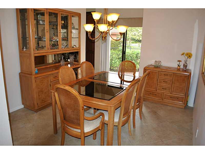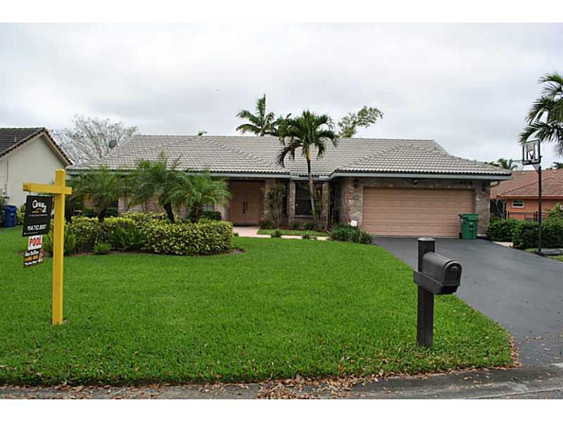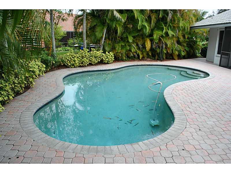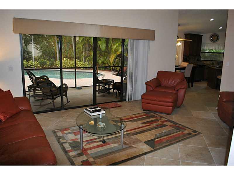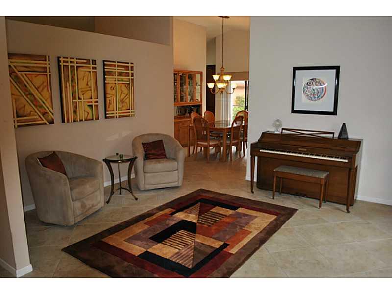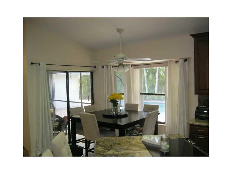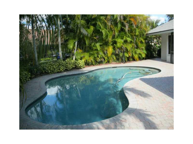Spectacular Coral Springs Home featuring Foyer Entrance, Open Floor Plan, Vaulted ceiling, Remodeled kitchen w/cherry wood cabinets, S.S. Appliances, Center Island Cooking, 20"X20" diagonal stone like Tile throughout except bedrm, Formal Dining, Eat-in-k itchen, approx. 1/4 acre pie shape lot, fenced yard, paver patio & side walk, 23X12 covered screened patio w/view of pool & tropical landscaping, plus shutters