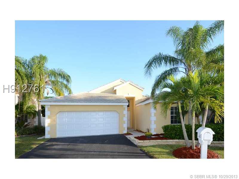 Per seller, over $80,000 in upgrades! Completely remodeled kitchen (42" light cherry wood cabinets, granite, stainless steel appliances, laminate flooring), and completely remodeled bathrooms (new tile, cabinetry, granite, fixtures, frameless shower door , spa tub and TV in master bath, etc.) Located in a cul-de-sac in one of Weston's most affordable communities (low HOA fees). Great open and light-filled split floor plan. Hurricane shutters, newer garage door, a/c, water heater, and much, much more!