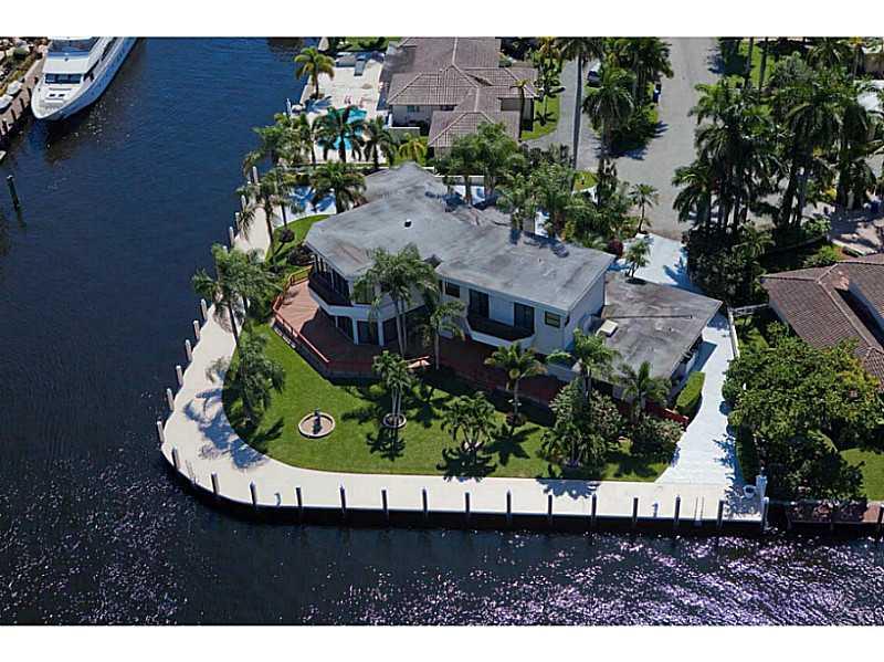 Spectacular Views from this 300 foot Las Olas Point lot on the north side of Las Olas. Newer 300 ft plus foot cement dock with deep water dockage for up to a 140-150 foot yacht with north dock previous draft of 10 feet at low tide. Dock contains both 3- Phase and single phase power. This 6 bedroom 6 bathroom home was used as a crew house by the previous owner and is listed for lot value. Build the house of your dreams and/or dock your yacht at this fabulous deep water point lot. Property sold "As-Is"